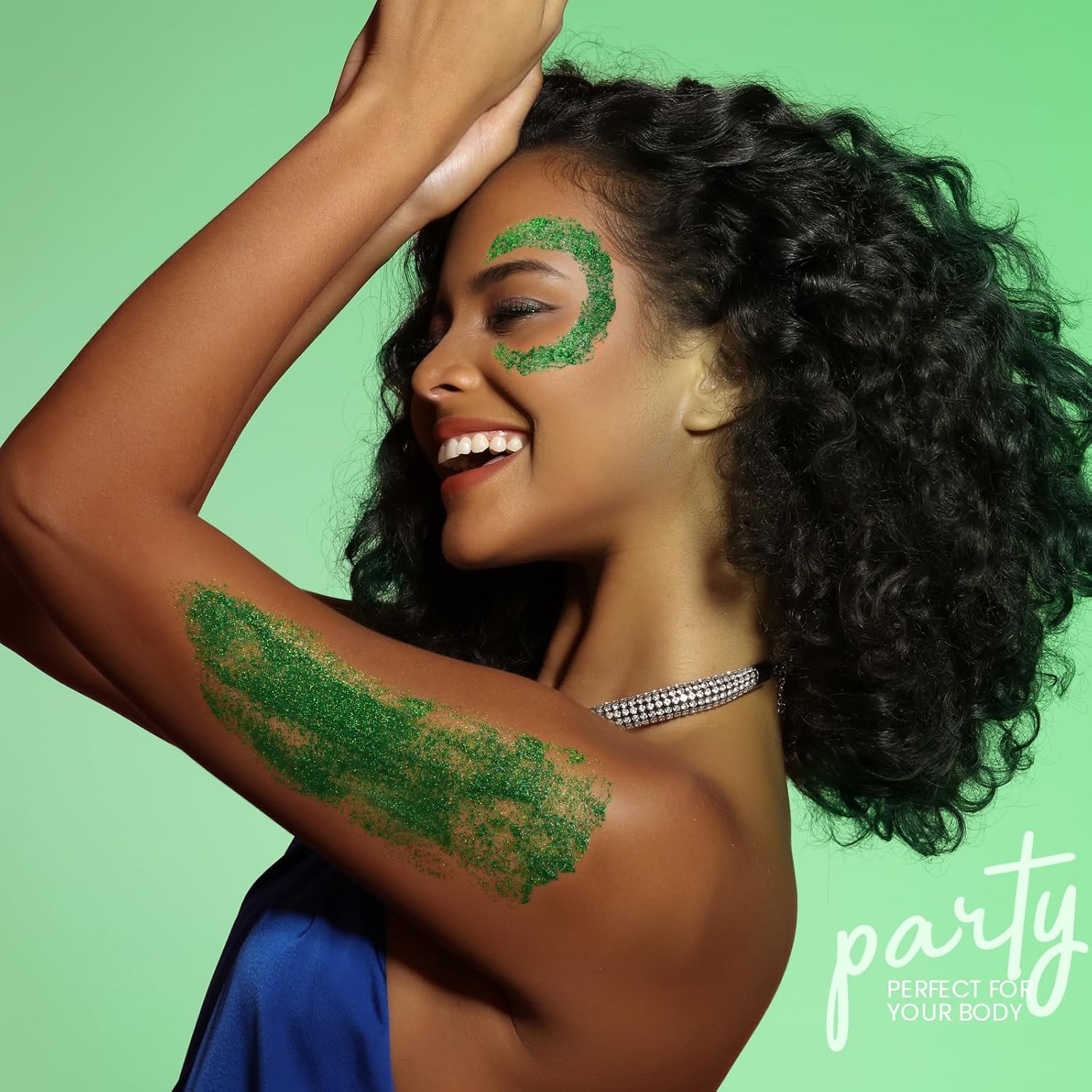 - GREEN BODY GLITTER GEL: Teenitor body glitter gel is easy to apply and dries quickly. With gel mixed in the glitter, it can minimize fall off. It has cosmetic grade gloss and is gentle for use on your skin. The holographic glitter gel comes in a generous 2.82 ounce bottle, providing you with plenty of product to create your desired look