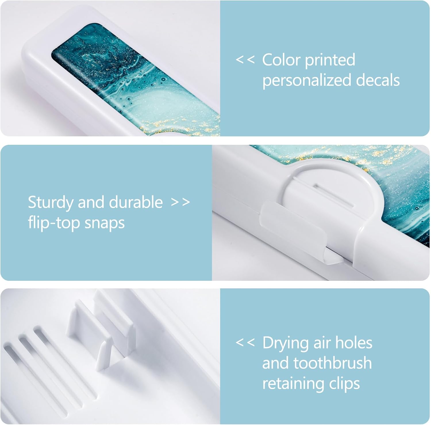 • 【Unique Design】toothbrush holders travel is made of solid white box and colorful patterned resin, which is beautiful and private,The bottom also has air holes to keep the toothbrush case breathable and dry.
