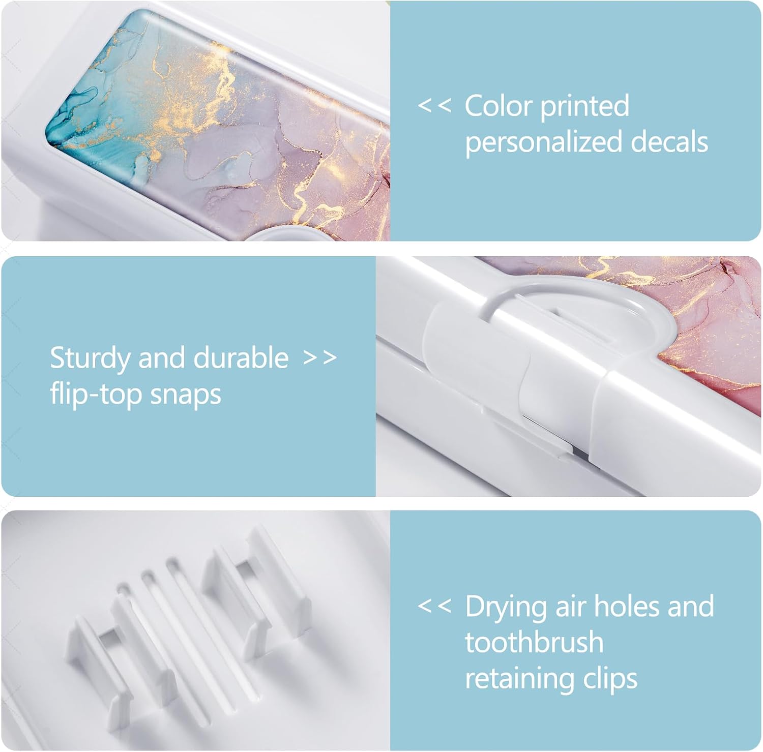 • 【Unique Design】toothbrush holders travel is made of solid white box and colorful patterned resin, which is beautiful and private,The bottom also has air holes to keep the toothbrush case breathable and dry.