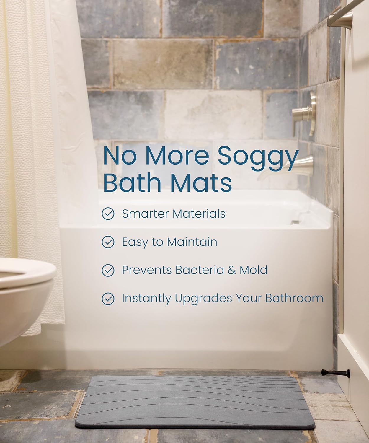 - SWIFT DRYING SOLUTION: Bid farewell to soggy bathroom floors! Step onto our non-slip stone bath mat crafted from natural diatomite, swiftly absorbing and evaporating water, leaving your feet dry in a flash.