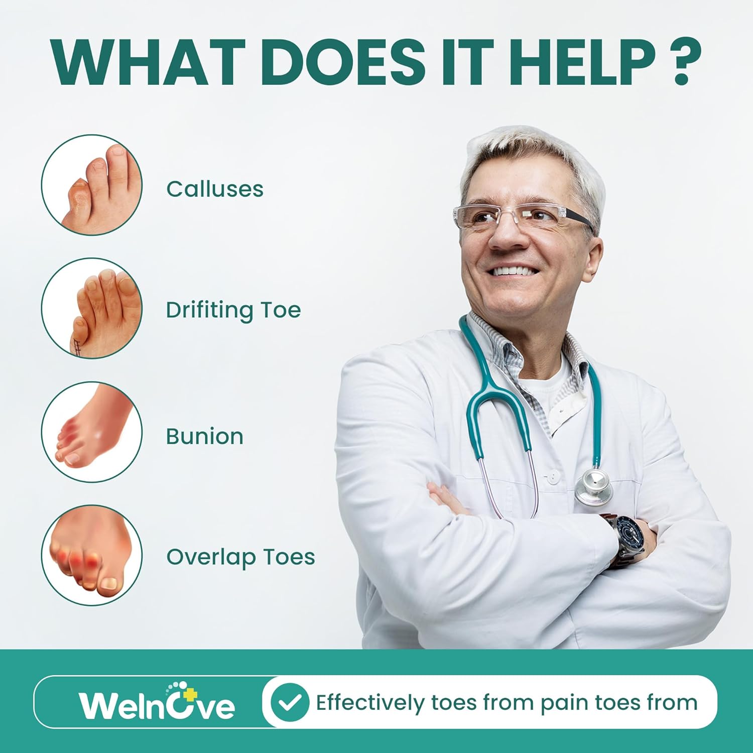 - Effective Pain Relief: Wearing our pinky toe separator helps create distance between adjacent toes and the shoe surface, easing toe pain from overlapping toes and preventing shoe rubbing.