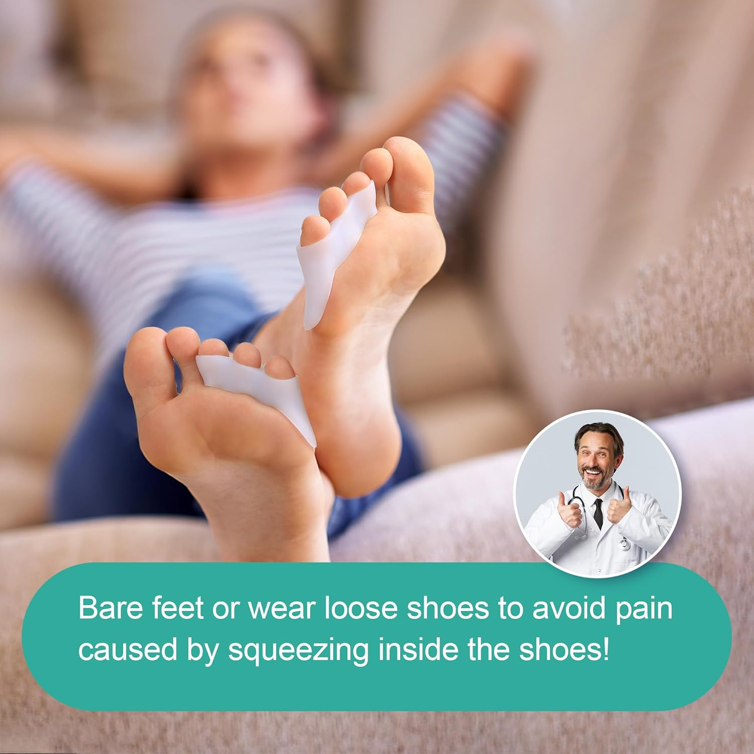 - Effective Pain Relief: Wearing our pinky toe separator helps create distance between adjacent toes and the shoe surface, easing toe pain from overlapping toes and preventing shoe rubbing.