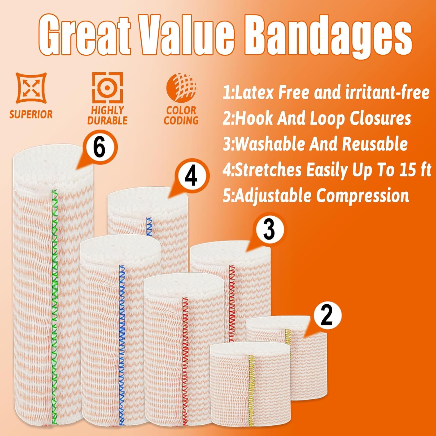 - Sufficient quantity,Individually Packed: 10 rolls of 6-inch wide leg compression bandages for your daily use and replacement needs,Each 6 in elastic bandage is individually packed for hygiene and convenience. The packaging ensures that the bandages remain clean and ready to use whenever you need them.