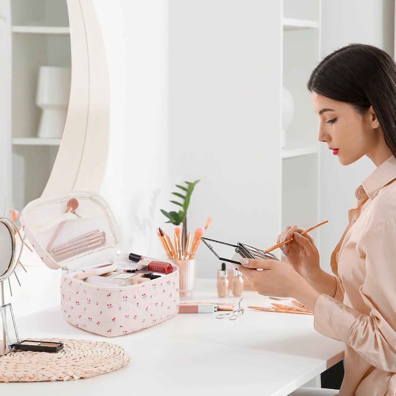- ✅ Multi-Purpose Use: This versatile bag serves as a daily handbag, cosmetics organizer, toiletry bag, or storage pouch. Its lightweight and compact design make it ideal for travel, keeping you organized on the go.