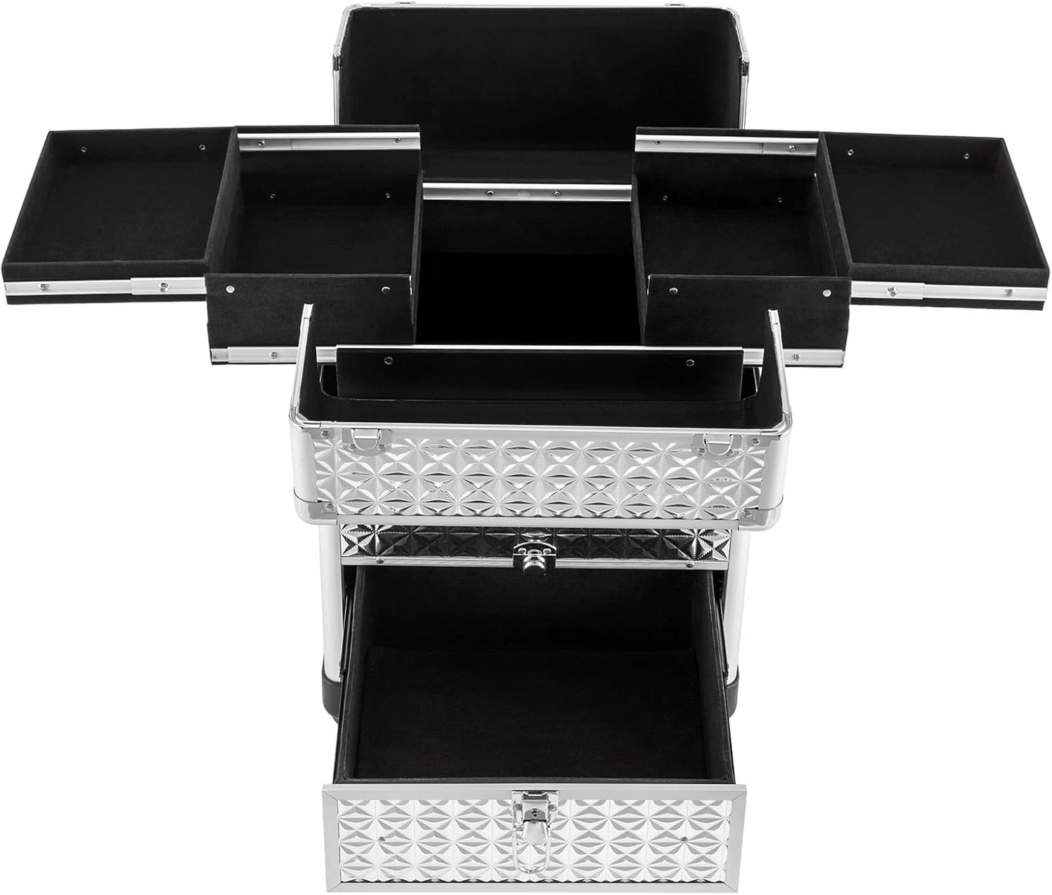 - Wide Application: This rolling makeup train case can be widely used by hair stylists, pet groomers, makeup artists, and so on for storing scissors, makeup, jewelry, combs, and other items. In addition, it is also very suitable for you to store tools or daily necessities when you go out.