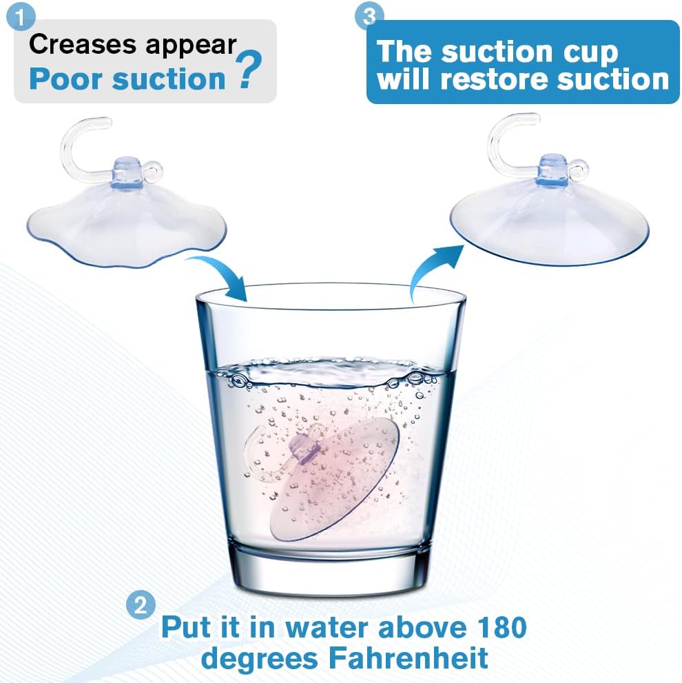 - [Tip Tip]: Due to the long-distance transportation of the suction cup, there may be a problem that the suction cup cannot suck the wall. You may need to soak it in hot water for 30 seconds and it will work just fine. The suction cup has a movable hook, pull the hook down to lock it, and then pull it up to release it. It stays strong-won't slip or fall.