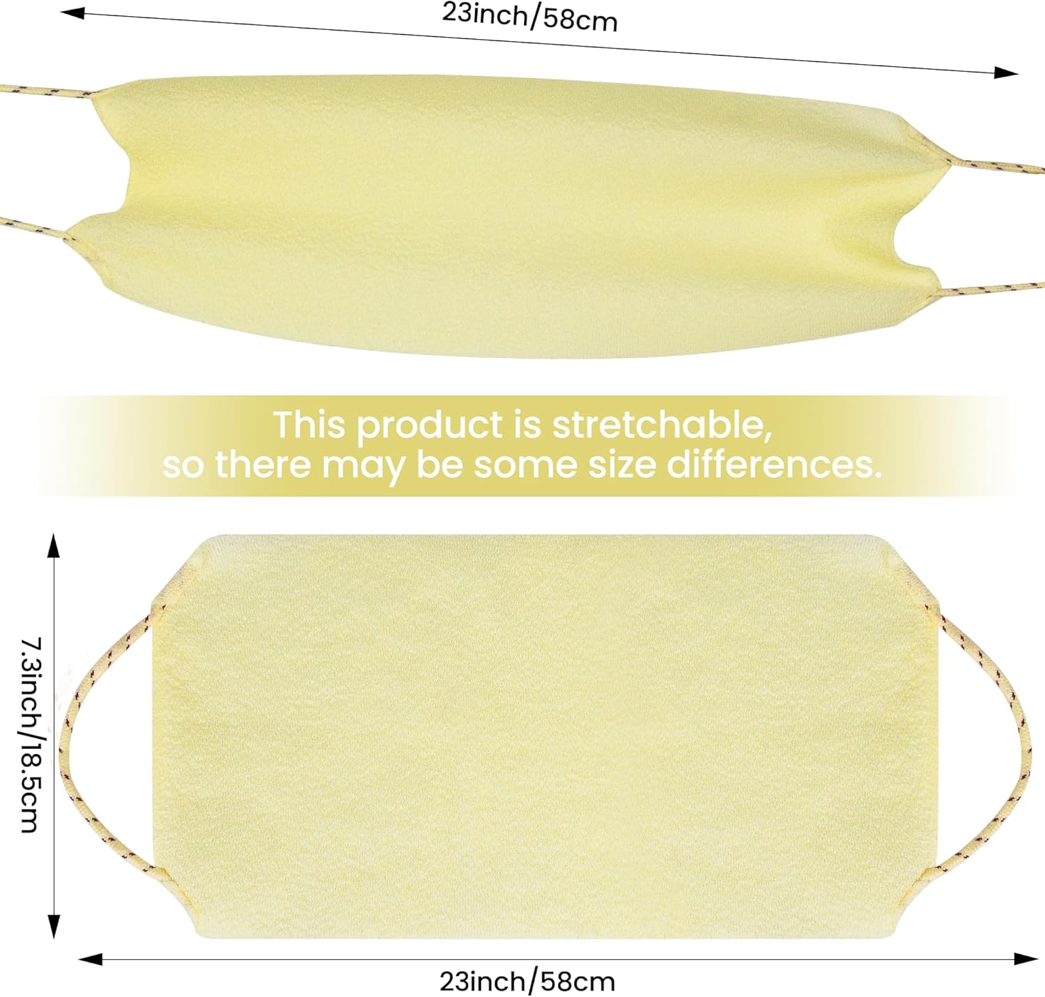 - 【Durable& Long& Practical】 This Double-sided exfoliating back scrubber folds up to the size of a handkerchief, but when stretched out, it is 37 inch long. More convenient than the traditional back brushes. With our back scrubber, you no longer need the help of others. The strong handles make it easy to grip, and scrubbing is no longer difficult. Perfect for people with shoulder issues. It's very small and won't take up much space when you're travelling.