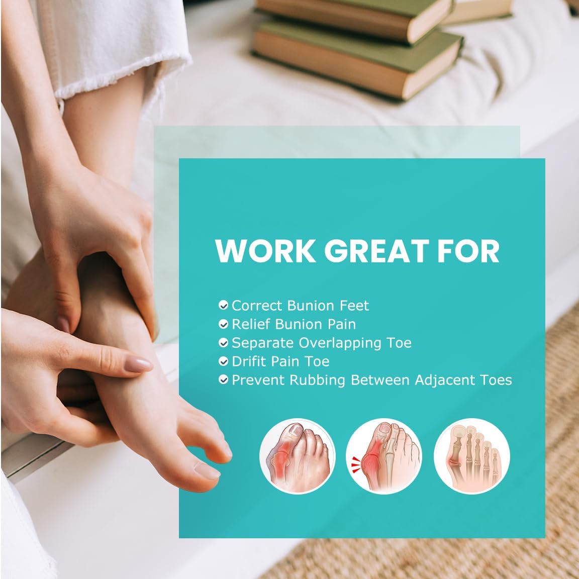 - Say Goodbye to Pain: If you are struggling with painful calluses, bunions, overlapping toes or other foot issues, these bunion relief pads are a simple and effective solution to relieve pain and correct your toes to prevent further discomfort.