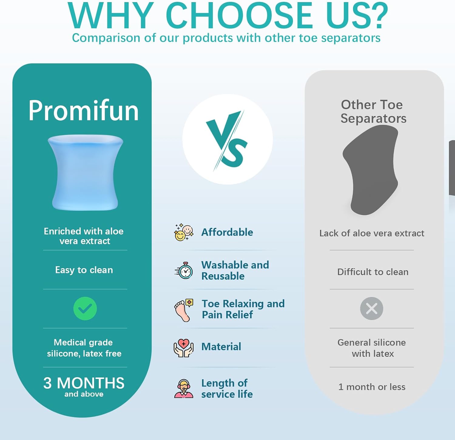 - Designed for Your Comfort: Promifun toe separators for women can help alleviate pain and discomfort caused by calluses, bunions, blisters, or corns, and may help promote a normal toe alignment while relieving pressure.