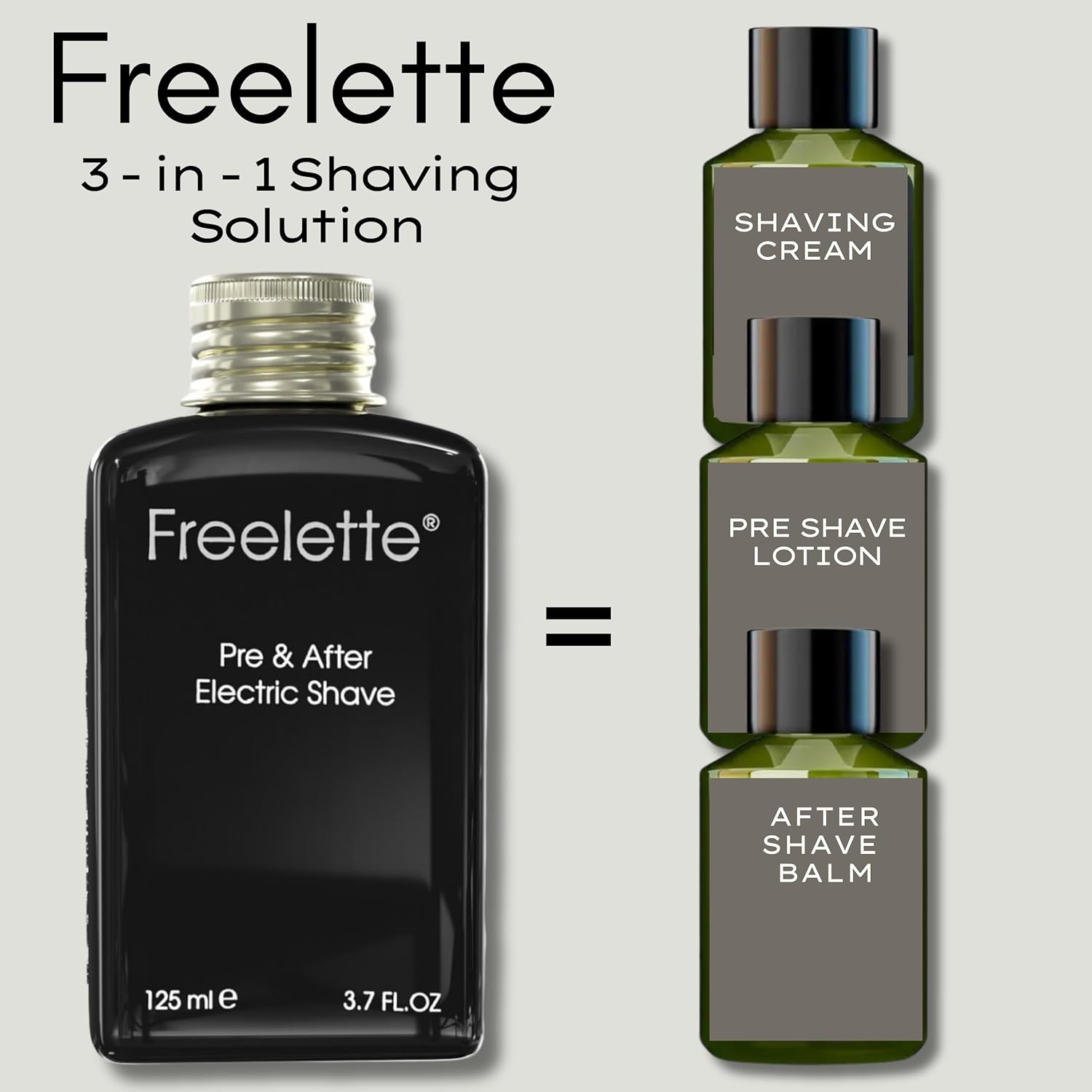 - It is a 3 in 1 product, that replaces: Shaving foams, soaps, manual razor aftershaves, creams, or gel. Freelette Pre Electric Shave After Shave Lotion Cream: Ideal for a close shave, it leaves your skin smooth and comfortable.