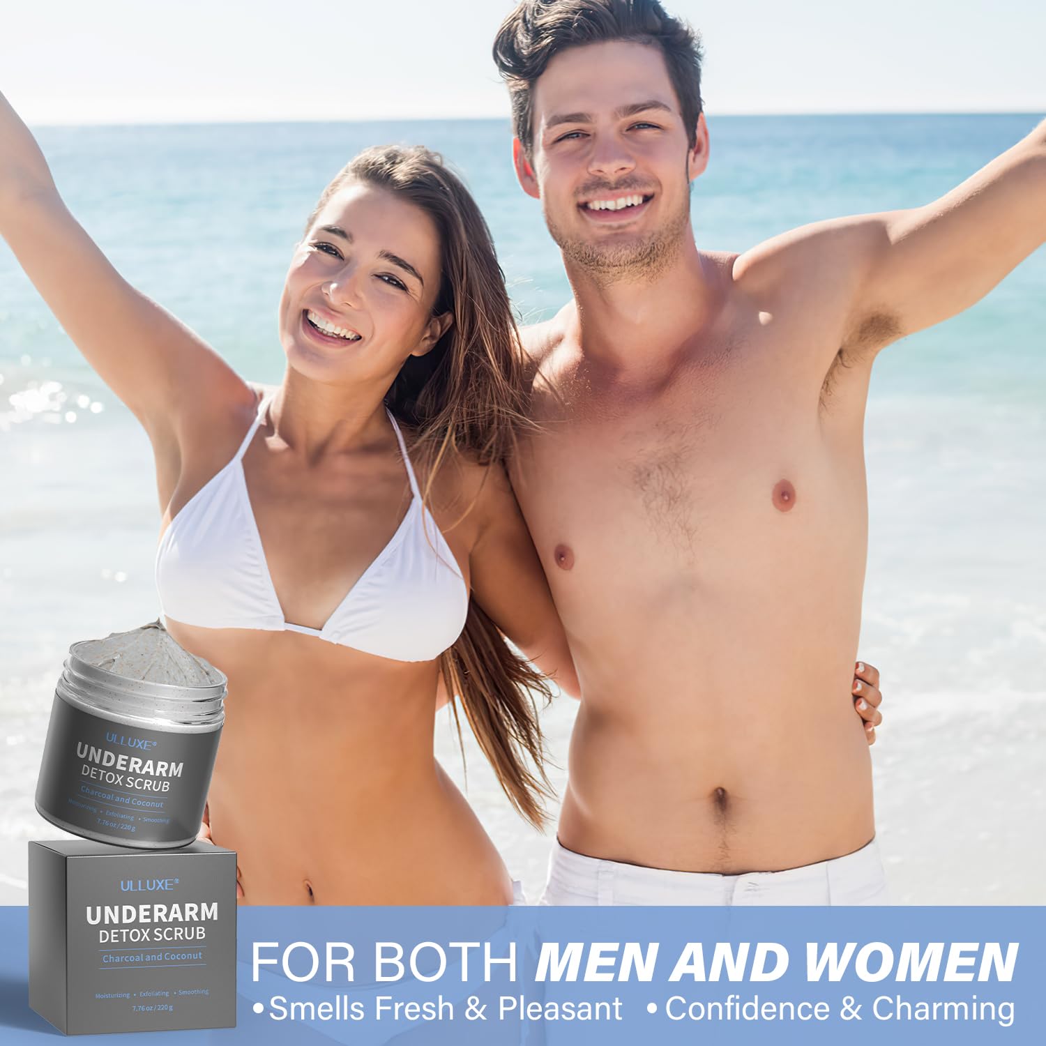 - ăGentle Underarm Detox ScrubăOur gentle exfoliating charcoal underarm detox scrub helps remove underarms odor, brighten dark armpits, improve rough skin, clear underarm buildup, remove excess oil from underarm pores, leaving your skin smoother, fresher and healthier