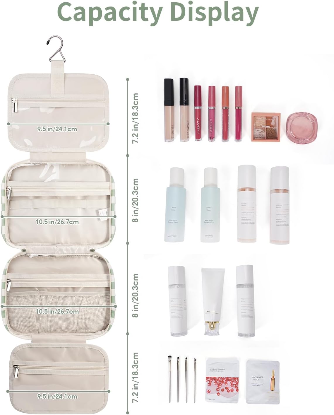 - PLENTY of ROOM - Fold size 10.75x8x5.5 inch, easily fit travel-size toiletries as well as makeup like shampoo, conditioner, lotion, toothpaste, toothbrushes, hair brush, shaving kit and a few extra items