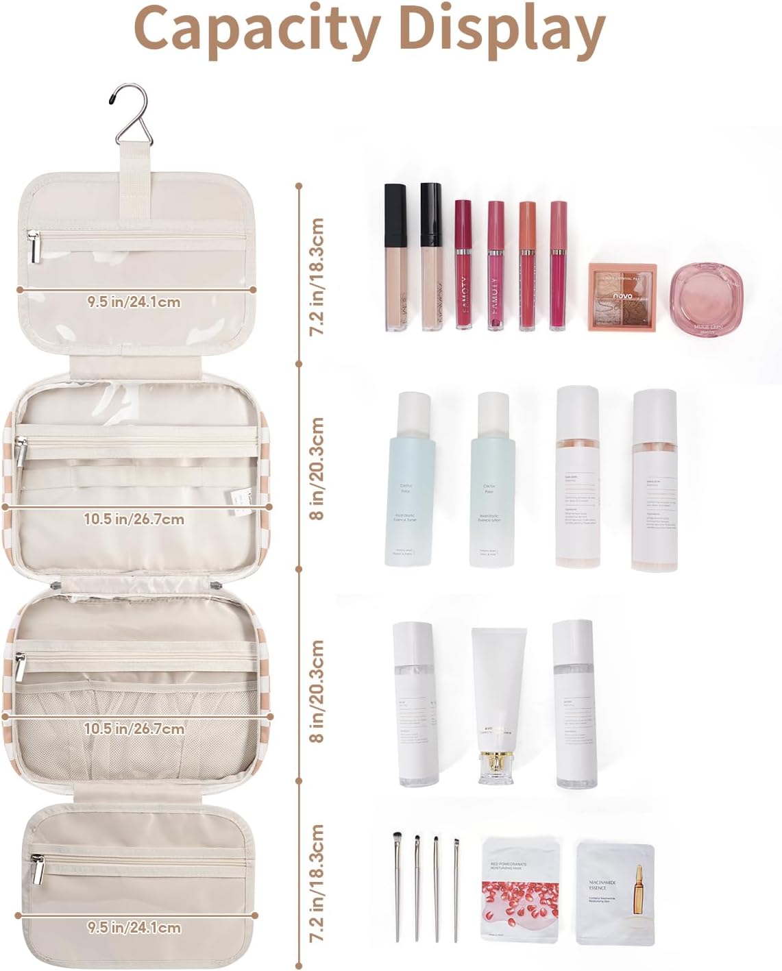 Narwey Hanging Toiletry Bag for Women Travel Makeup Bag Organizer Toiletries Bag for Travel Size Essentials Accessories Cosmetics (Light Checkerboard (Medium))