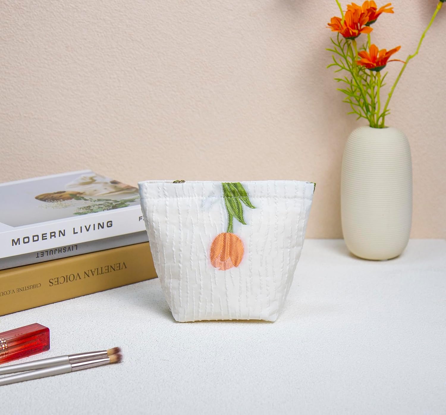 - Floral Pouch Pattern Small Cosmetic Bag for Purse: The large makeup purse feature a beautiful tulip floral print, adding a touch of style to your makeup routine. Make you feel happy everyday.