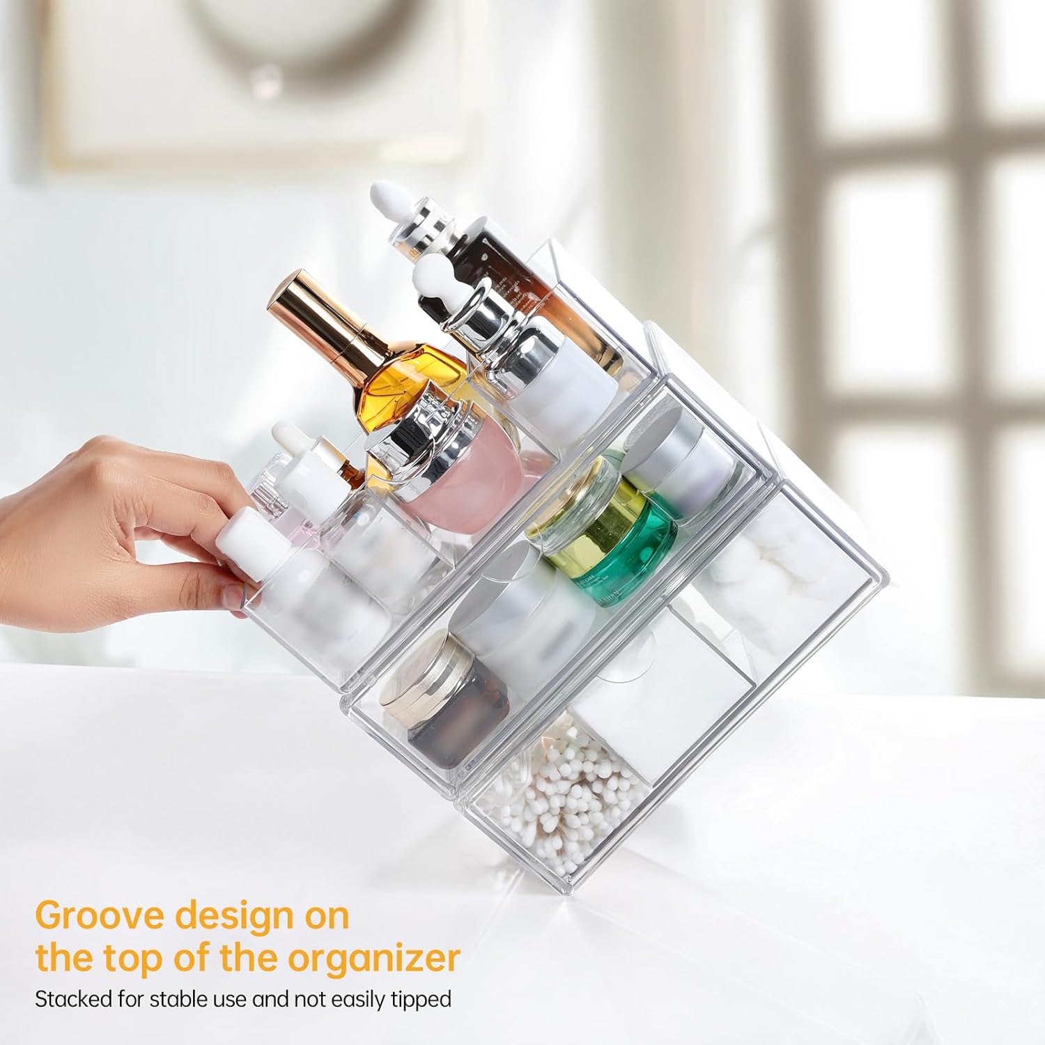 - Clever design: The stackable design of the box can reduce the space occupation and increase the storage efficiency;โThe drawer design is easy to access items; Anti-slip feet on the bottom to hold the box securely