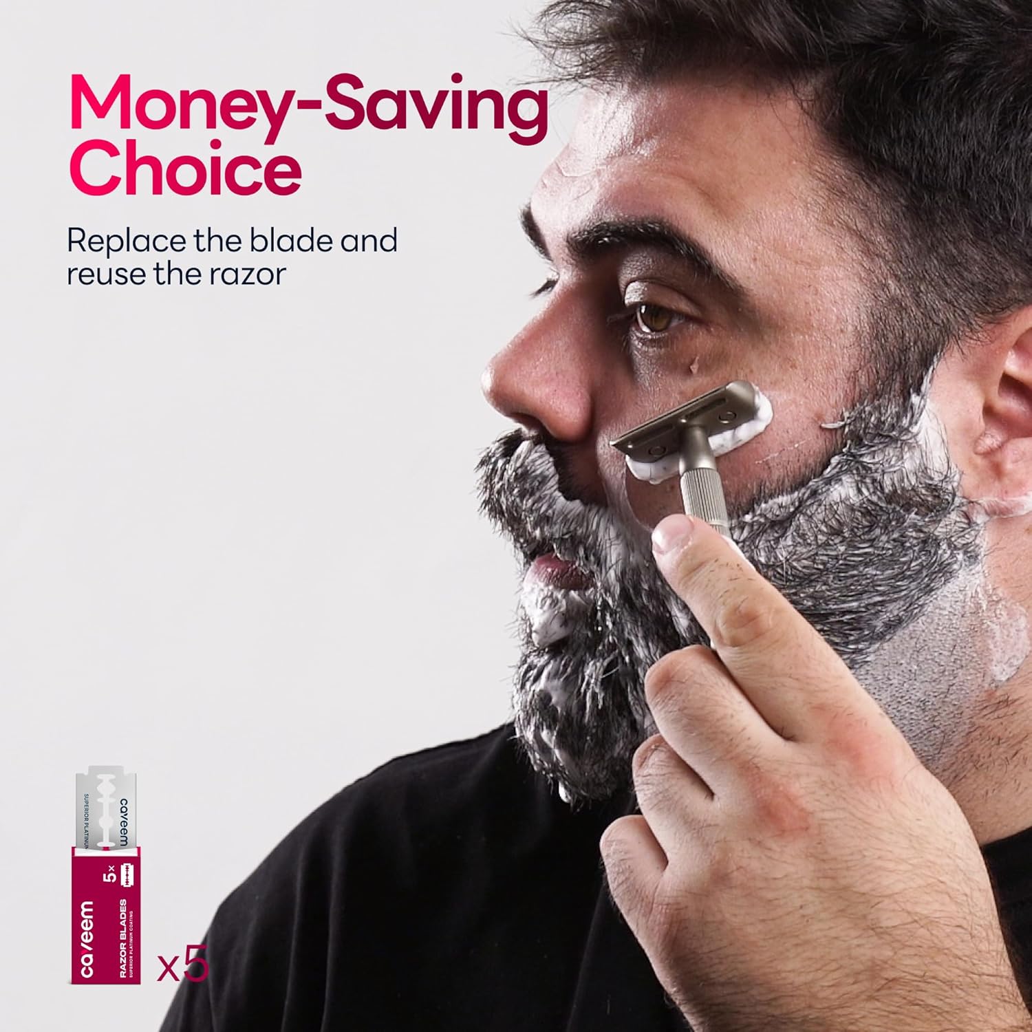 - TAKE PLEASURE IN PRACTICAL SHAVING : Ditch disposable plastic razors with CAVEEM’s metal razor and replaceable double-edged blades, reducing plastic waste while supporting endurable products while maintaining high-grade lives