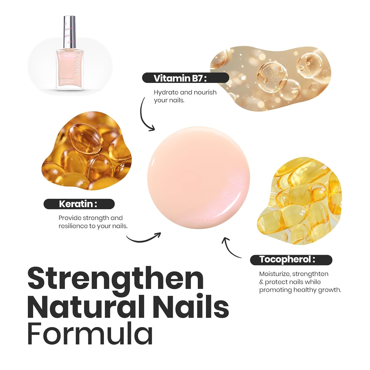 - Nail Polish Base Coat and Top Coat: Beetles nail polish kit including 15ml pearl pink nail polish,15ml 2 in 1 base&top coat nail polish. Protects your nails from damage, provides your colored nail polish nails with a brighter and longer-lasting shine, protects your nail polish color.