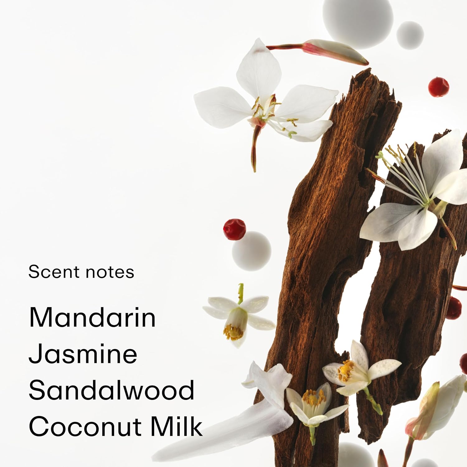 - SCENT NOTES: Top: Mandarin Splash, Pink Pepper, Golden Pear. Heart: Orange Flower Water, Jasmine Blossom, Coconut Milk. Base: Benzoin, Sandalwood, Vanilla Cream.
