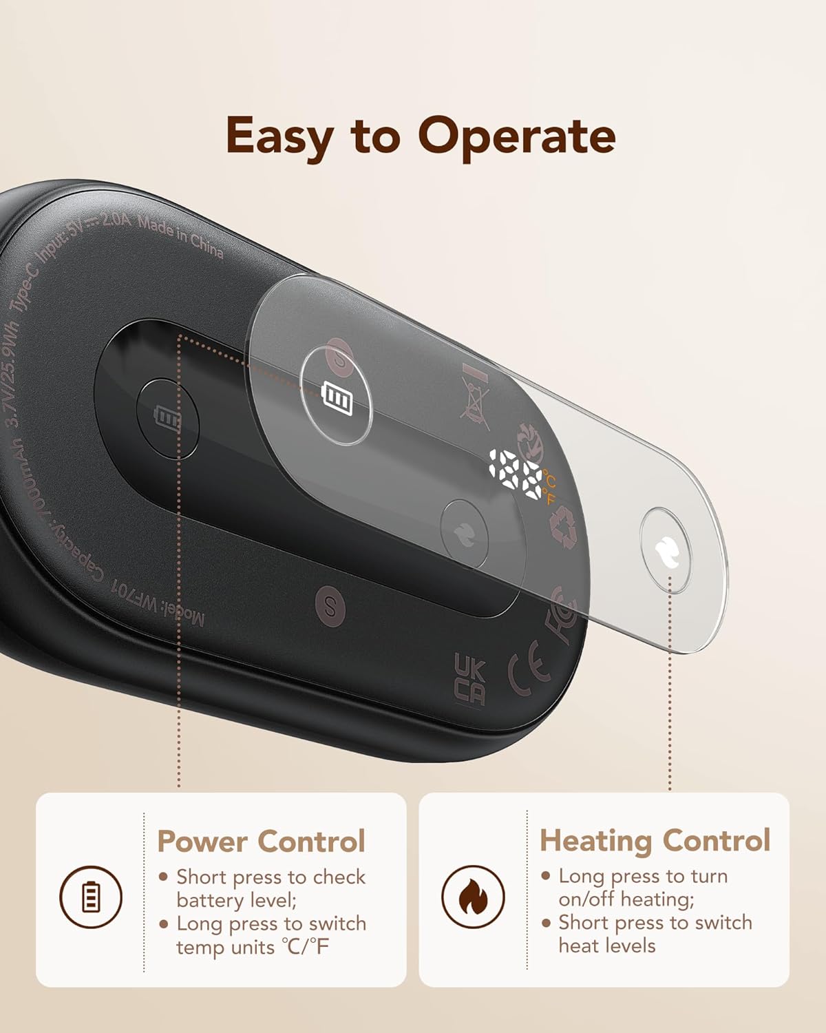 - 3-Level Adjustable & Longer Lasting Warmth: WeeFancy rechargeable hand warmer supports 3 adjustable heating levels up to 131°F to meet different needs. With a larger 7000mAh battery capacity, it provides you with up to 8~16 hours of warmth during the cold days. The included Type-C charging cable can quickly charge the hand warmer in 4 hours