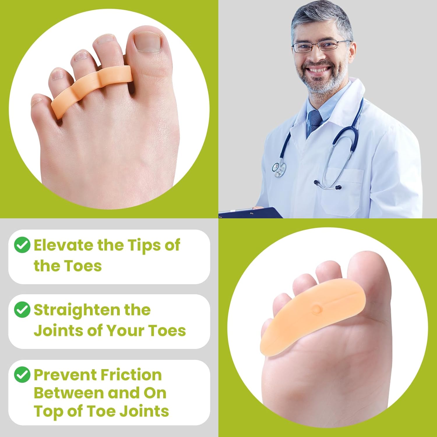 - Physician-Designed Durability - Our toe corrector are made of soft and flexible silicone gel to ensure long-lasting comfort, and our gel can be easily cleaned and reused as often as you need. Silicone and latex free for sensitive skin.