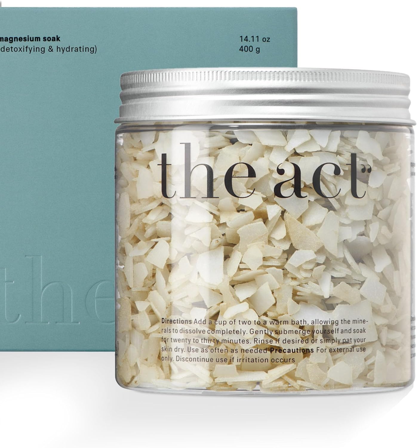 - Replenish Magnesium Levels with Ease: The Act magnesium flakes for soaking is a natural and effective way to restore magnesium levels through the skin. Regular soaking bath help calm the nervous system, promote restful sleep, and alleviate symptoms of premenstrual syndrome by reducing irritability and anxiety.