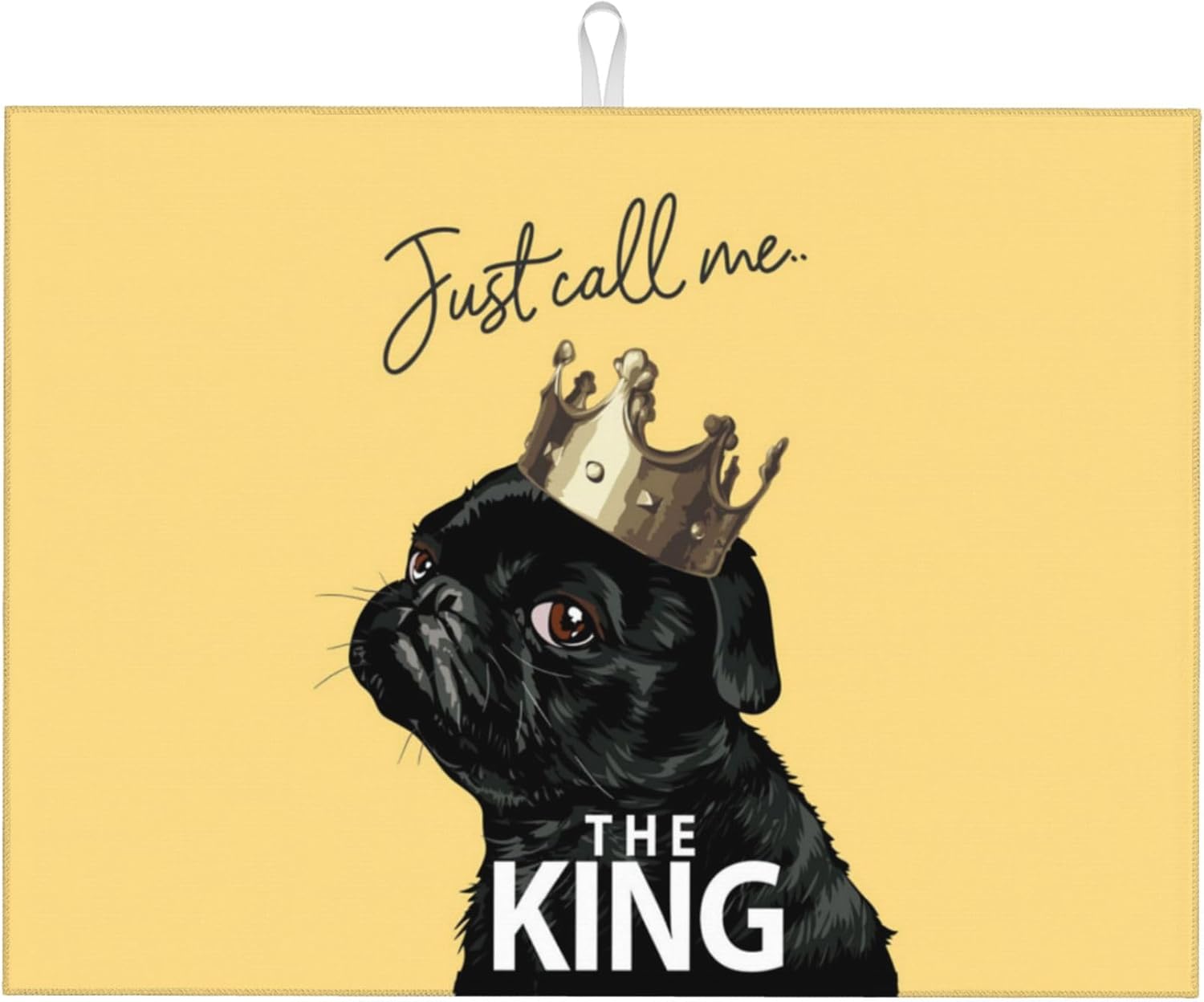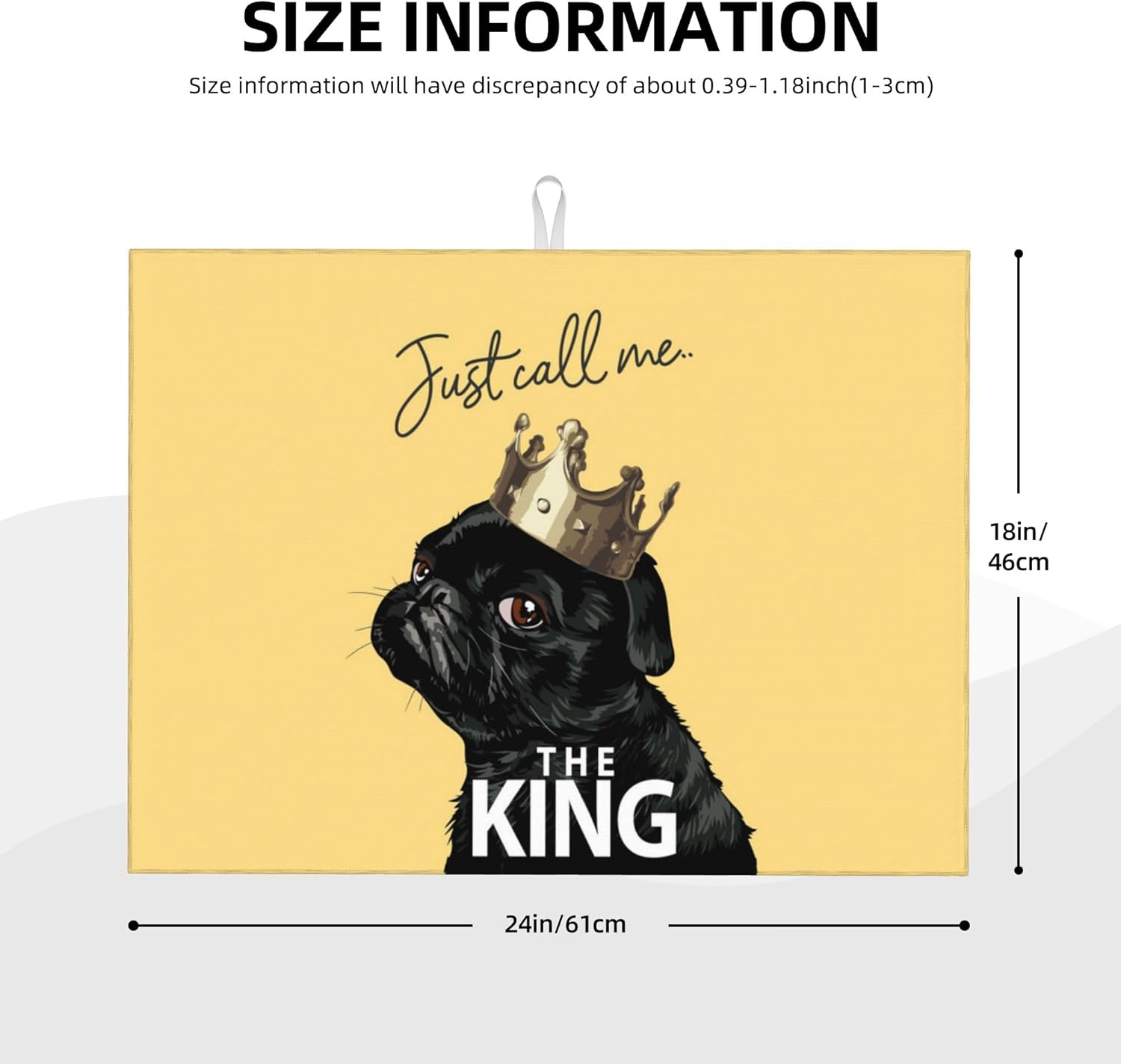 Funny Bulldog Dish Drying Mat for Kitchen Counter Cute Dog Drying Pad 18x24 Inch Yellow Absorbent Reversible Dish Drainer Rack Mats