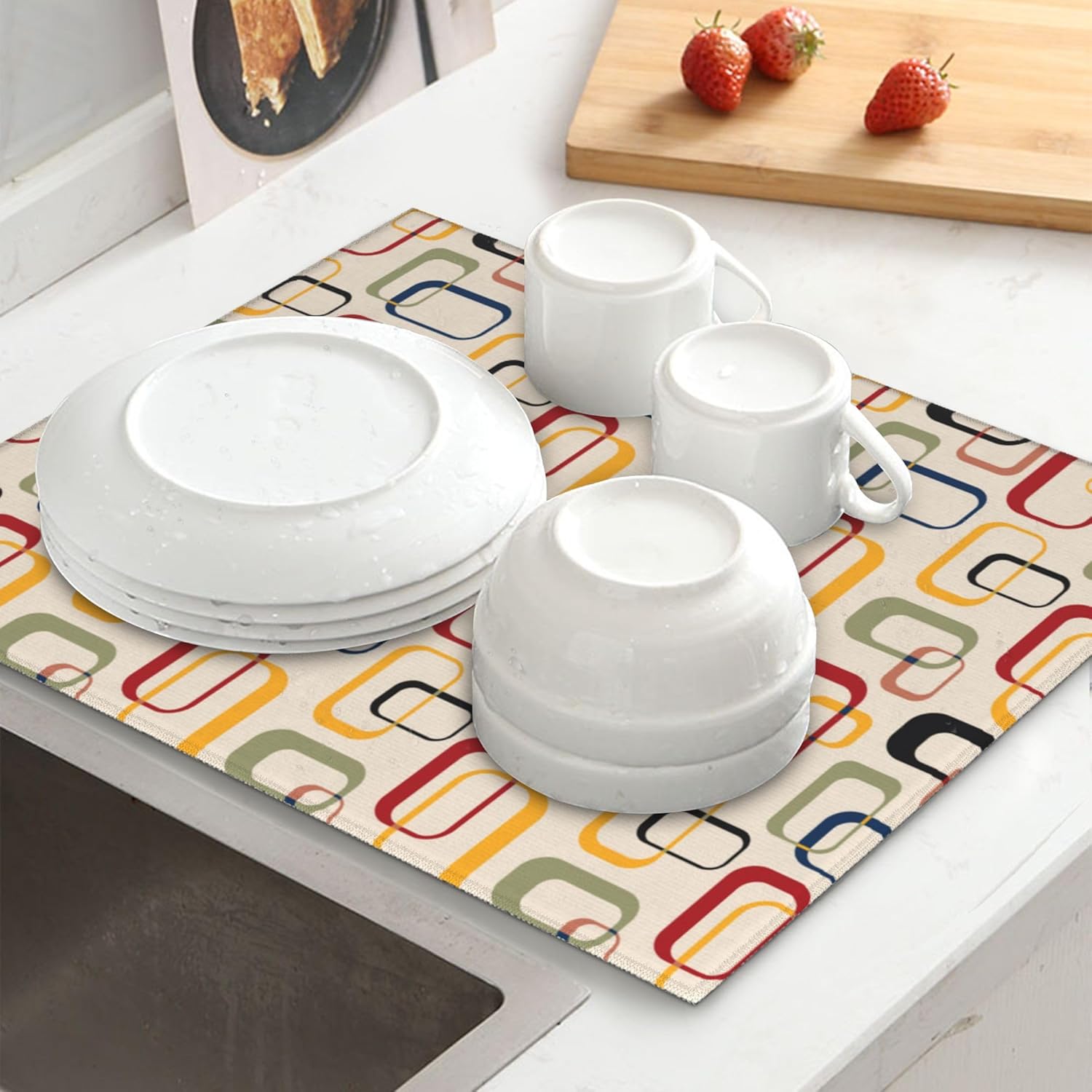 Mid Century Modern Retro Dish Drying Mat for Kitchen Counter Washable Absorbent Reversible Microfiber Vintage Decorative Drying Pad Kitchen Accessories 16x18 Inch