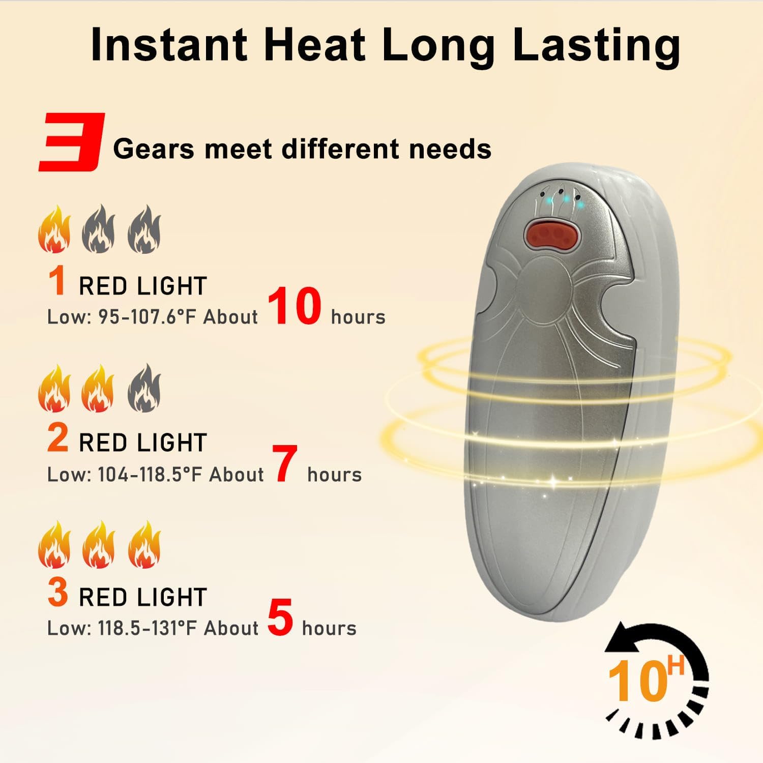 - EASY ADJUSTMENT OF THREE GEARS- 2 seconds fast heating with 3 heating settings for your choice: low temperature 35-42°C (95-107°F), medium temperature 42-48°C (107-118°F), high temperature 48-55°C (118-131°F), to achieve stable, adjustable, precise and comfortable heating effect. Provide you with instant warmth.