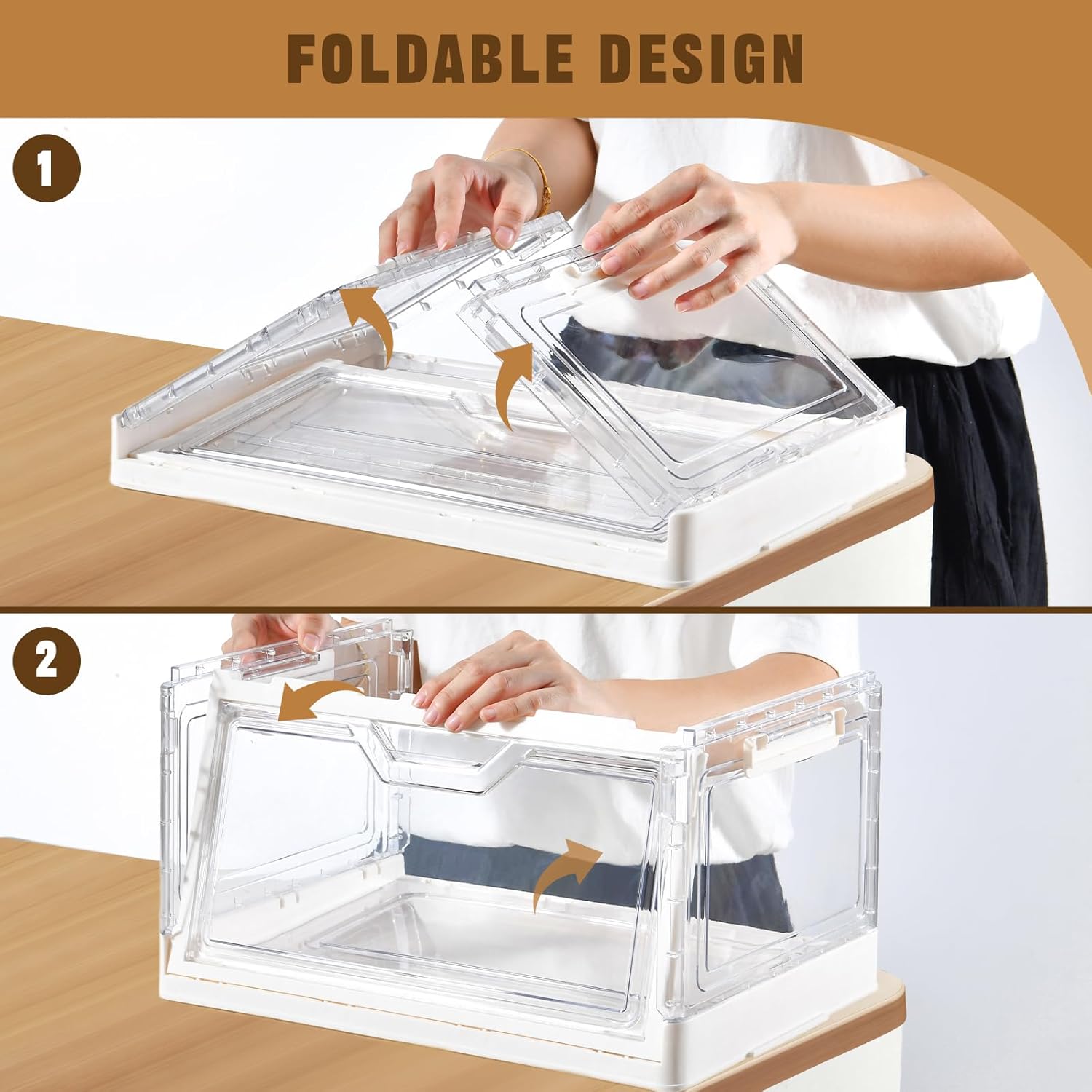- Dual Opening Mechanism for Easy Access - The Freebat storage bins with lid come with a convenient dual opening system. You can access your items through the front magnetic doors or the top lid, depending on your preference. This design ensures that you can easily retrieve items whether you're using the bins as stackable storage drawers or collapsible storage bins.
