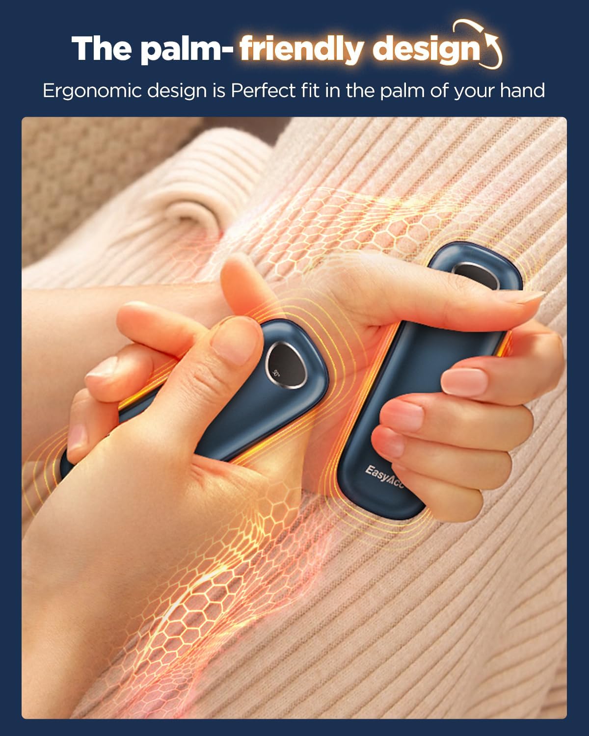 - 【The Palm-Friendly Design】: After 3 years of research, EasyAcc launched the most suitable hand warmers rechargeable for palm grip, perfect fit in the palm of your hand, Ergonomic design is comfortable to hold. The perfect winter companion for you and your Lovers!