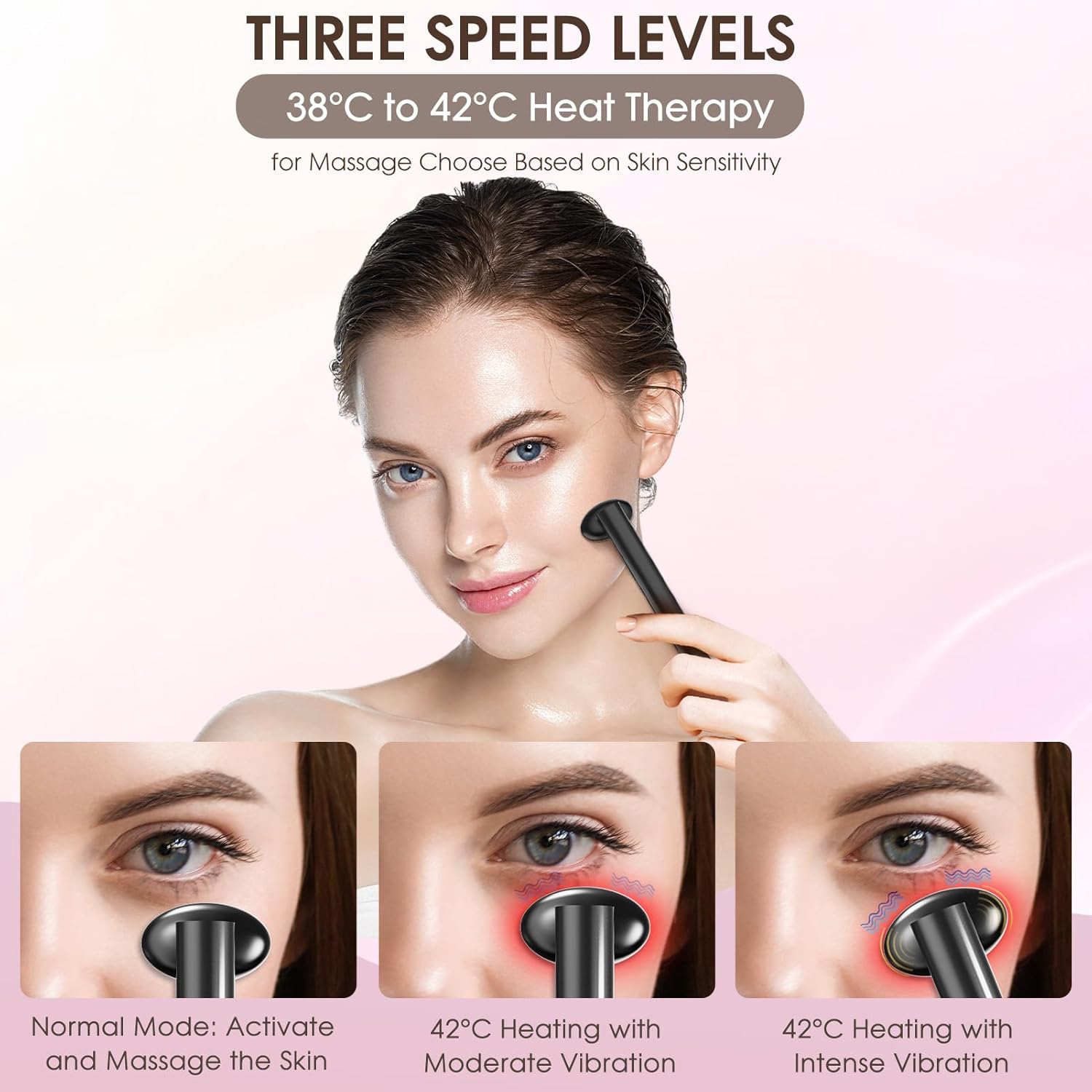- Frequency Massage: The face light therapy device features three different frequency massage modes, combined with thermal therapy (38-42ยฐC). Choose the appropriate frequency of massage based on skin tolerance, and promote skin absorption through massage to make the skin smooth, firm, and elastic.