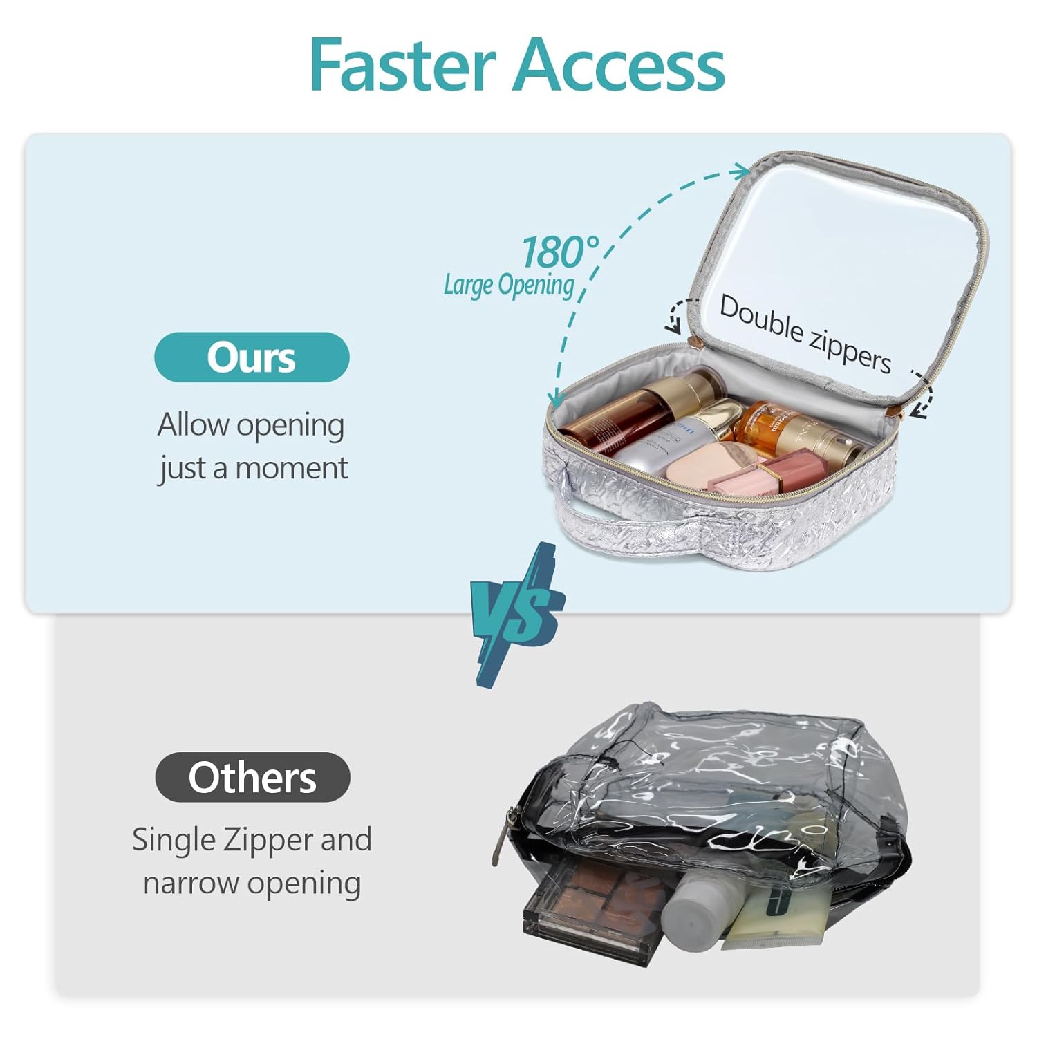 - 180° Flip-Top for Easy Access: The clear travel bag opens flat for facilitating access to travel essentials. The top handle makes it convenient to carry and hang, while the solid metal zipper is strong than plastic one, ensuring a secure seal. Each bag is less than 1 lb.
