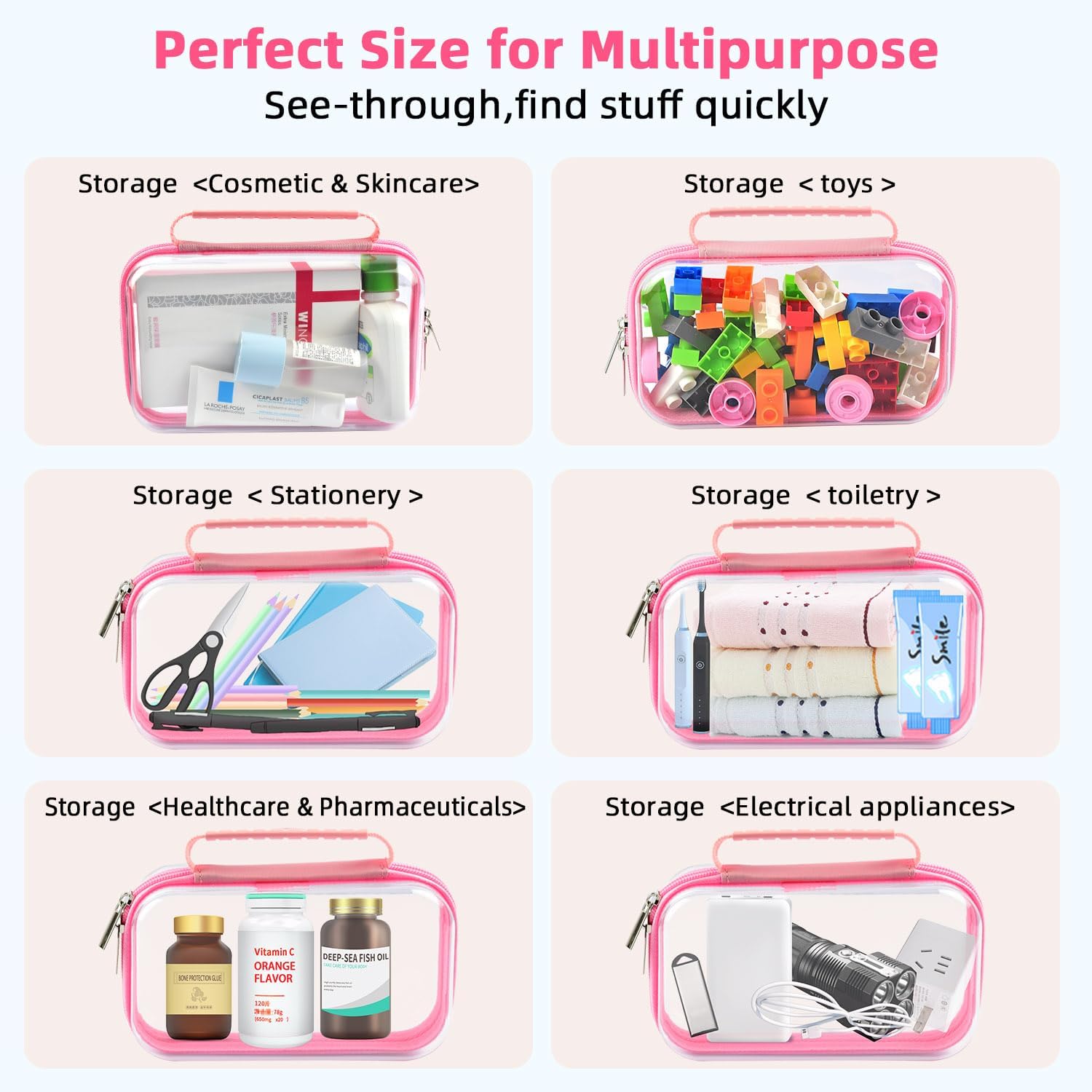 - Premium Quality Material: This zippered storage bags are crafted with Zippered Pouch Hard-end PVC material offering reliability and durability for storing cosmetics, and small travel essentials. Enhanced with sturdy zippers and reinforced seams, these pouches stand up against breakage and leakage.