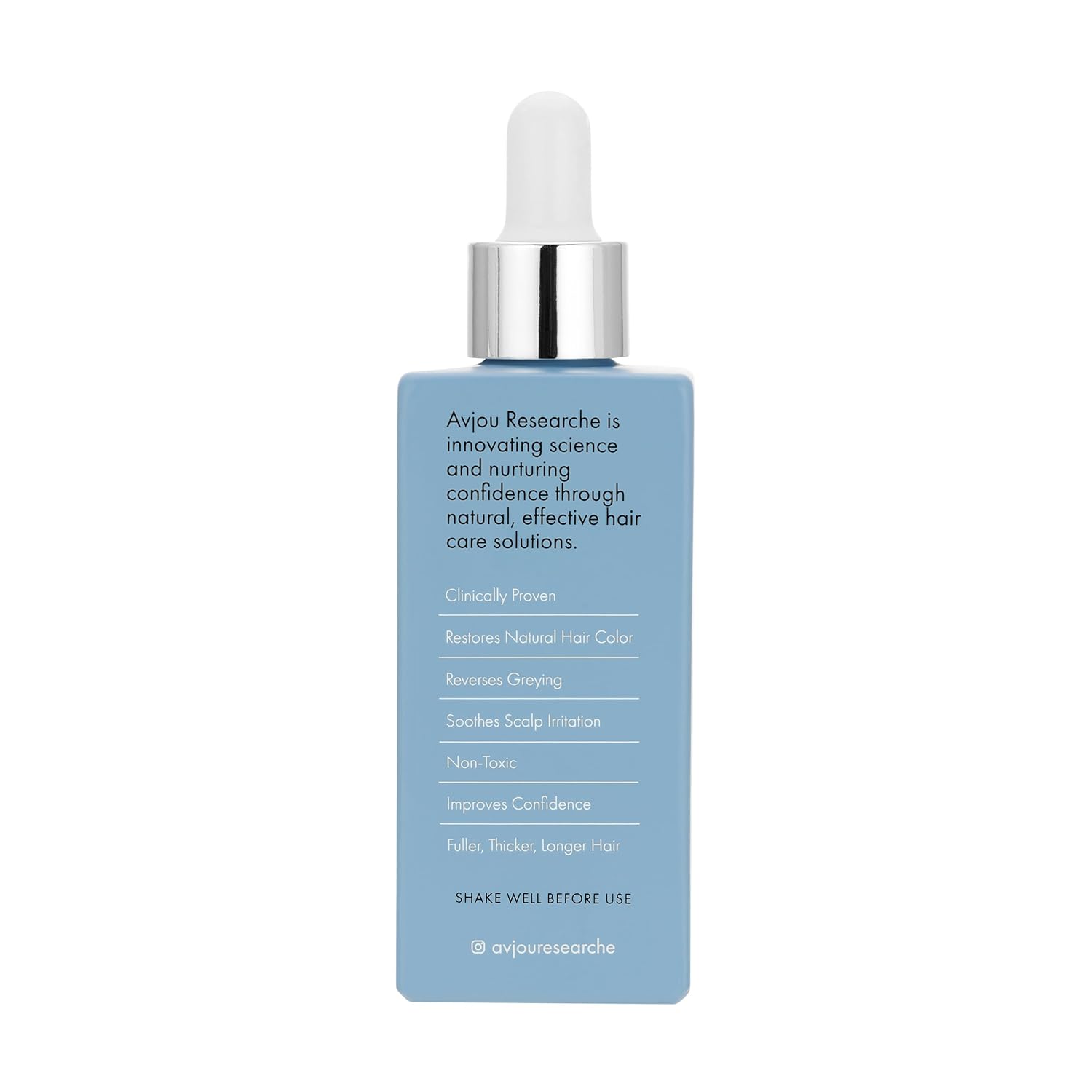 Avjou Researche™ Scalp Serum – Thicker, Fuller-Looking Hair + Targets Visible Signs of Premature Greying – 3 Patented Ingredients – Backed by Cosmetic Science – Oil-Free, All Hair Types, 1.7 oz
