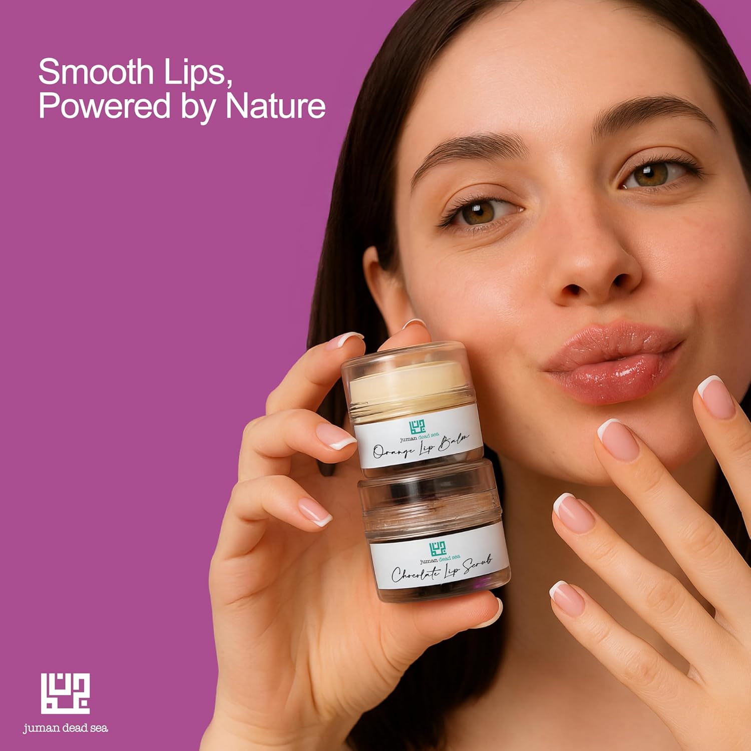 Juman Dead Sea Minerals Lip Care Set | Hydrating Lip Balm & Scrub | Orange & Chocolate | For Chapped & Dry Lips | Dorm Essentials | Vegan | SLS & Paraben-Free | Great as a Gift