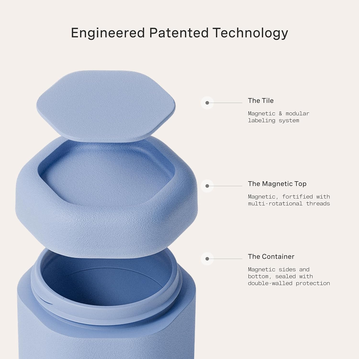 - PATENTED MAGNETIC DESIGN - Designed for seamless storage, our travel capsules feature a magnetic design that connects each container vertically or horizontally. They include magnetic labels that seamlessly swap between The Flex Small, The Flex Medium, and The Flex Large Capsules.