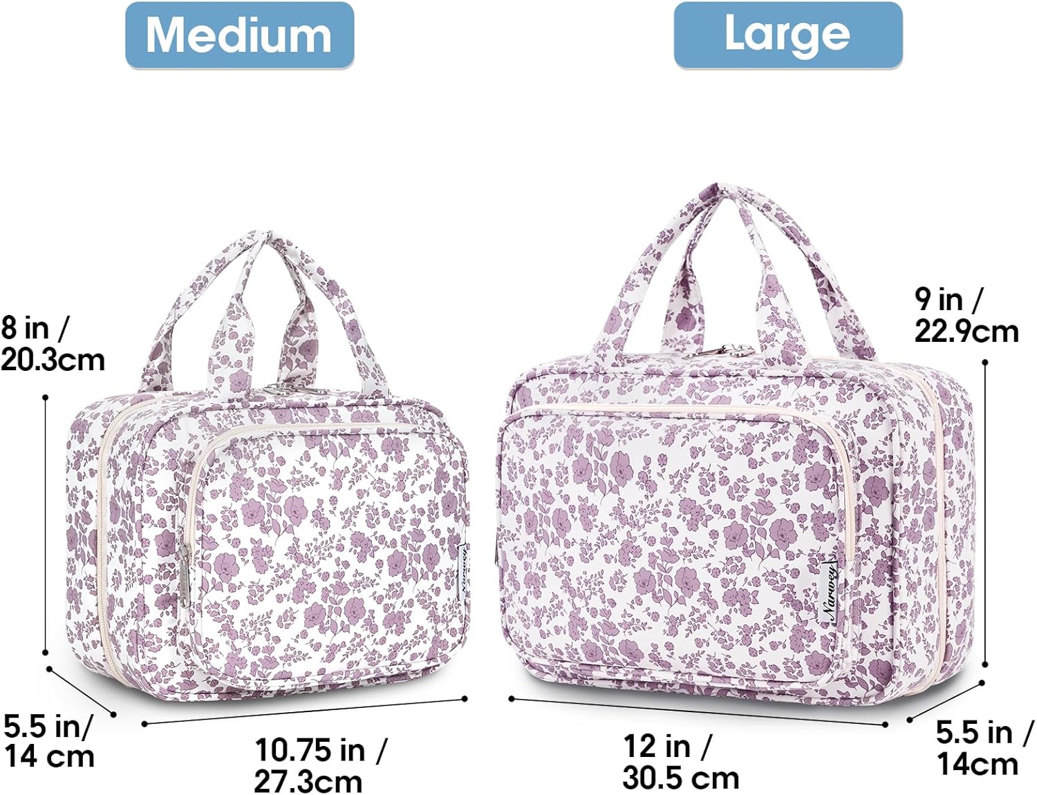 Travel Toiletry Bag for Women Large Hanging Makeup Bag Organizer Toiletries Bag for Full Size Essentials Accessories Cosmetics (Little Dusty Pink Flower (Large))