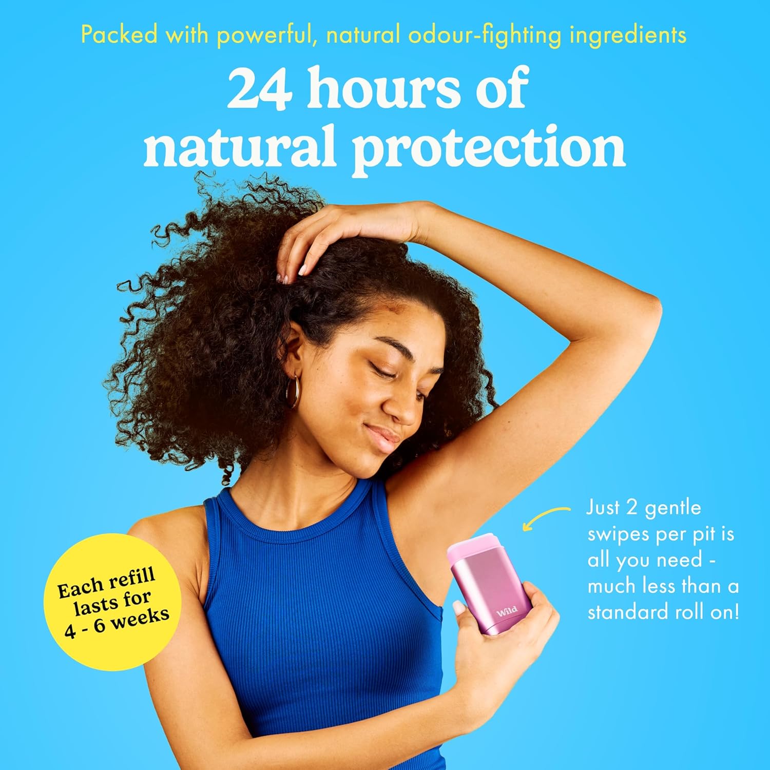 Wild - Refillable Deodorant Starter Kit with Pink Case and Fresh Cotton & Sea Salt Scented Refill 1.4oz - Aluminum Free - Long Lasting Protection - Vegan