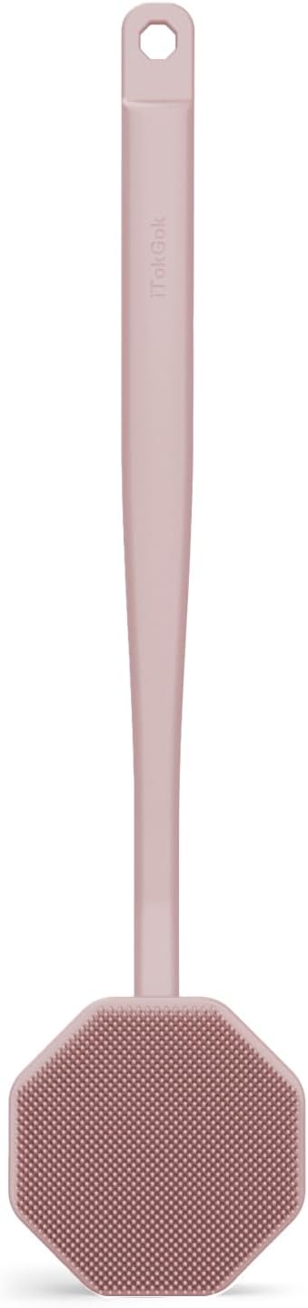 iTokGoK® Silver-Infused Silicone Back Scrubber with Long Handle Back Brush for Shower,Back Brush Long Handle for Men and Women,Ergonomic No-Slip Handle, Long-Lasting (Sand Pink)