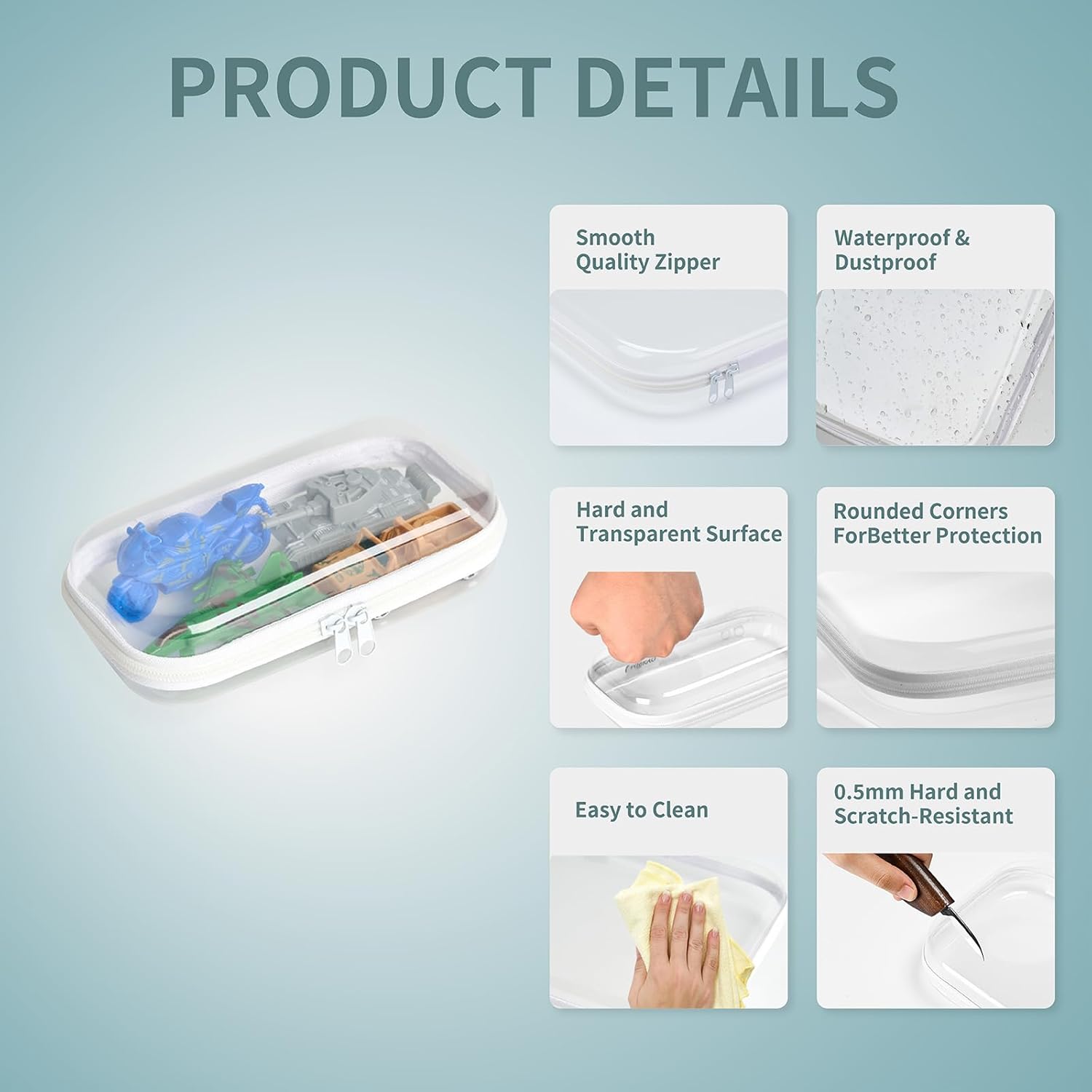- Premium Construction: These clear hard zipper cases are made of PET material, which is not only sturdy and durable, but also easy to clean. Reinforced zippers and seams provide extra durability, making it a reliable choice for daily use and long-term storage.
