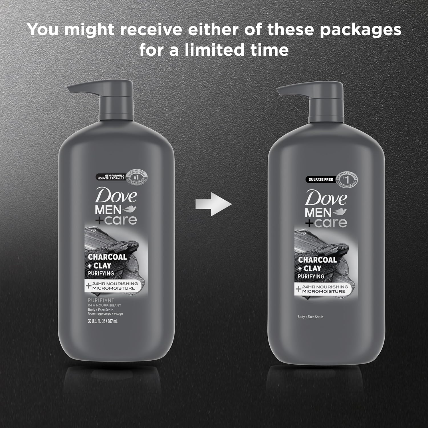 DOVE MEN + CARE Body and Face Scrub Charcoal + Clay Body Wash for Men with 24-Hour Nourishing Micromoisture Technology 30 oz