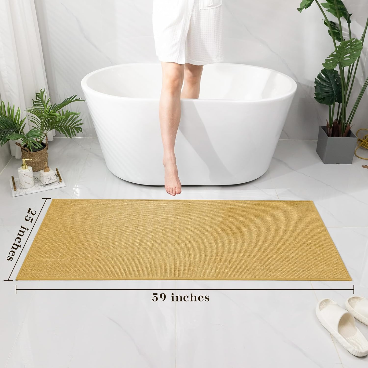 chakme Bathroom Rugs Mat 59x25, Ultra Thin Non Slip Bath Mat Large Quick Dry Absorbent Bath Mat for Bathroom Floor, (Yellow, 59"x25")