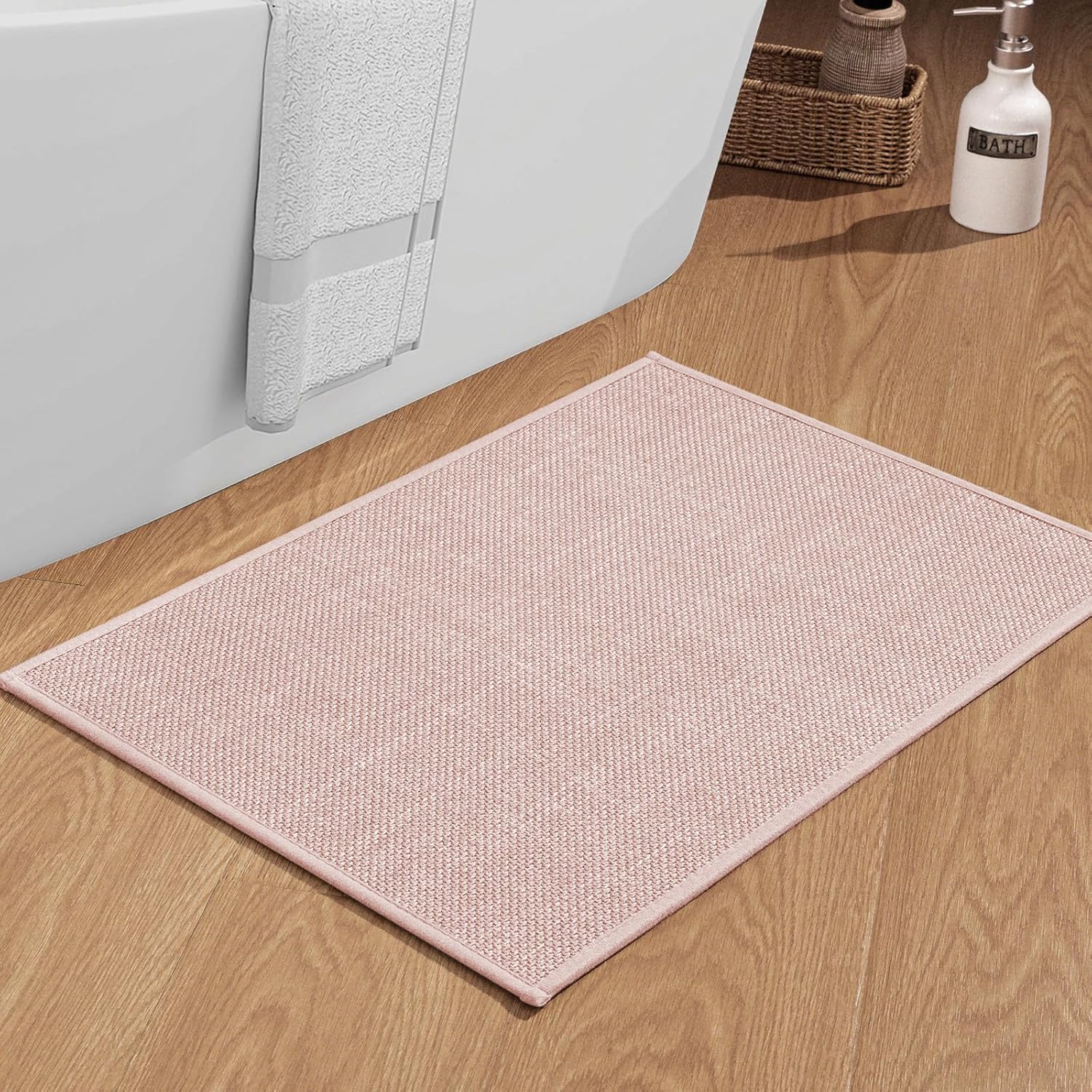 chakme Bathroom Rugs Mat 36x25, Ultra Thin Non Slip Bath Mat Large Quick Dry Absorbent Bath Mat for Bathroom Floor, (Pink, 36"x25")