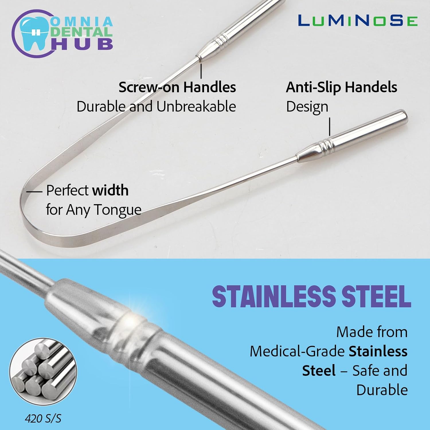- MEDICAL GRADE QUALITY FOR SUPERIOR PERFORMANCE: Crafted from high-quality, medical-grade materials, this tongue scraper ensures durability and reliability. Designed for long-lasting use, it is free from harmful chemicals, making it safe for daily oral hygiene routines. Its non-toxic, stainless steel construction is resistant to corrosion and ensures optimal performance with each use.
