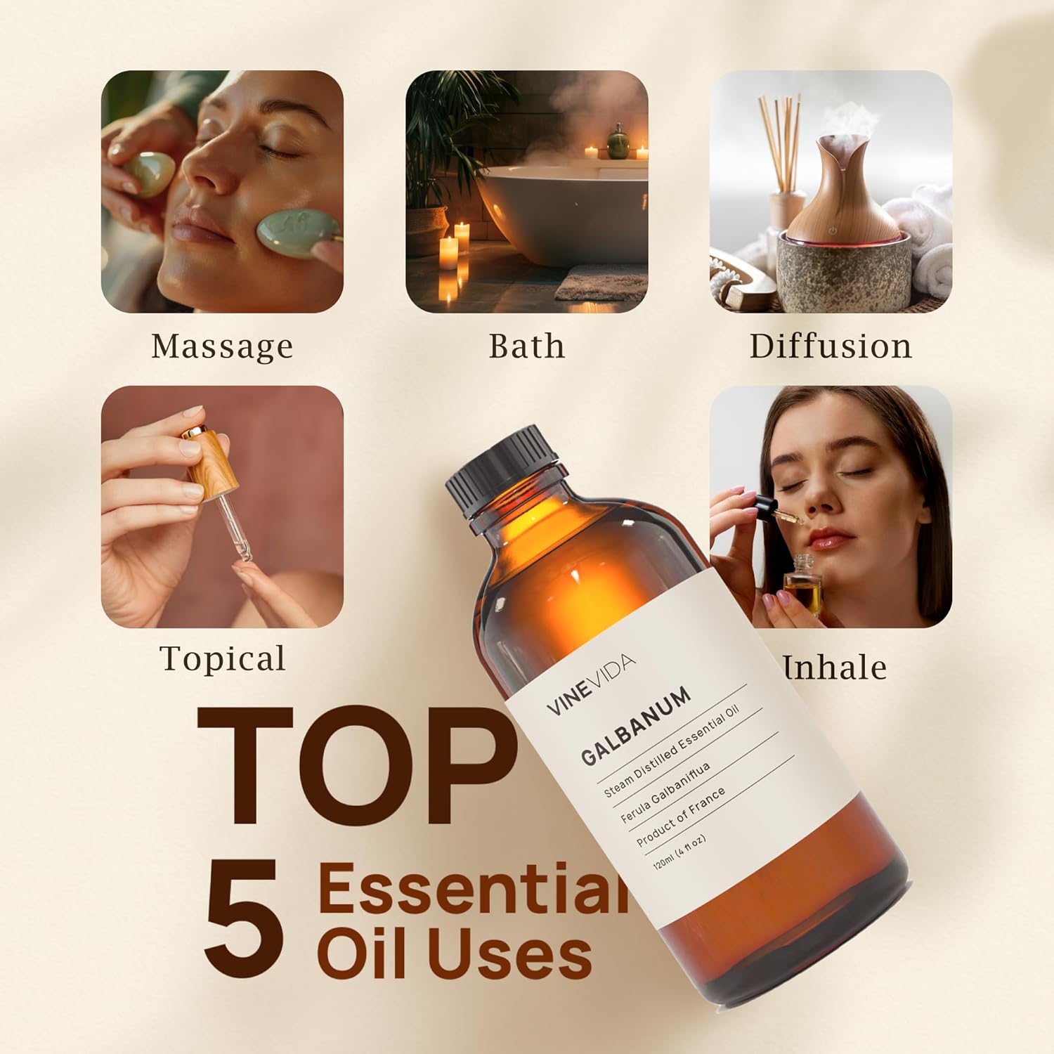 VINEVIDA Galbanum Essential Oil 4 oz - Undiluted - DIY Candle Scents - Bulk for Soap Making