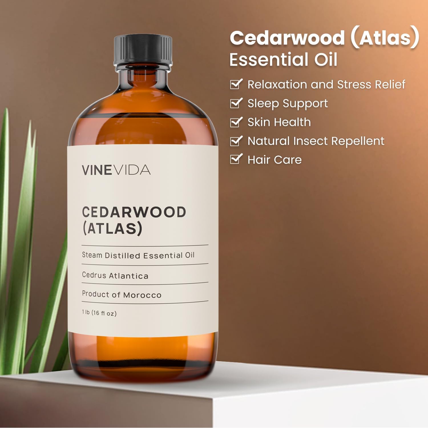 VINEVIDA Cedarwood Atlas Essential Oil 16 oz - Undiluted Candle Oil Scent for DIY Candlemaking - Bulk Essential Oil for Soap Making