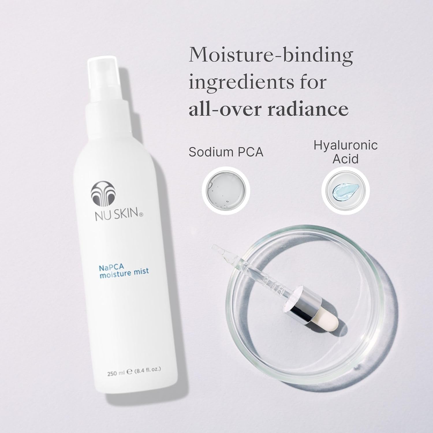 Nu Skin NaPCA Moisture Mist | Revitalizing Moisturizer & Cooling Mist with Hyaluronic Acid | Hydrating Spray for Face, Body & Hair | Sodium PCA for All Skin Types | 8 oz | 1 Pack