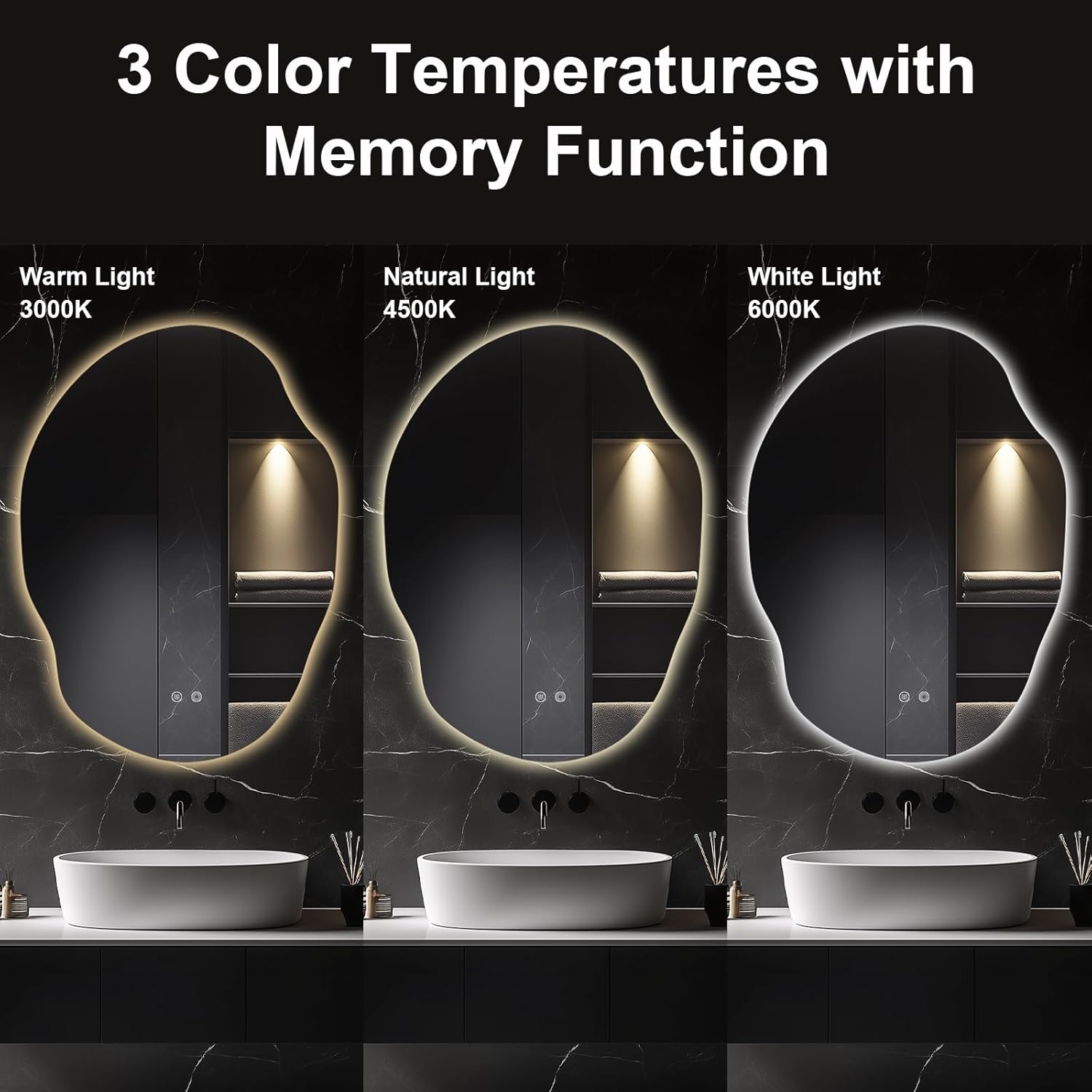 - Dimmable LED Light with 3 Color Temperatures: Choose from 3 color temperatures to suit your bathroom mood, with adjustable brightness via a touch sensor button for easy control.