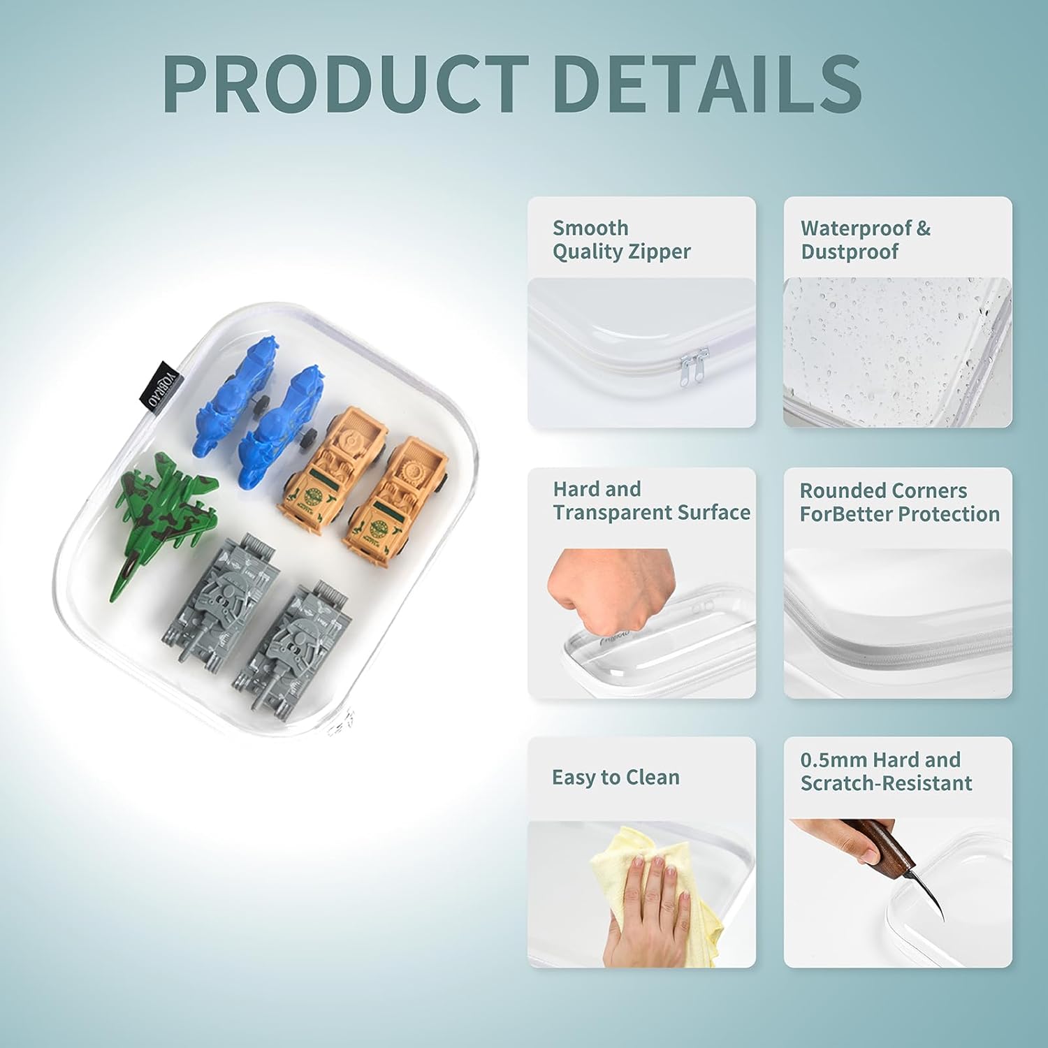 - High-Quality Materials: These clear hard zipper cases are made of from professional-grade plastic and free from BPA and phthalate, we ensure that the YQBRAO Clear Hard Shell Zipper Case are made for durability and the safety of your family.