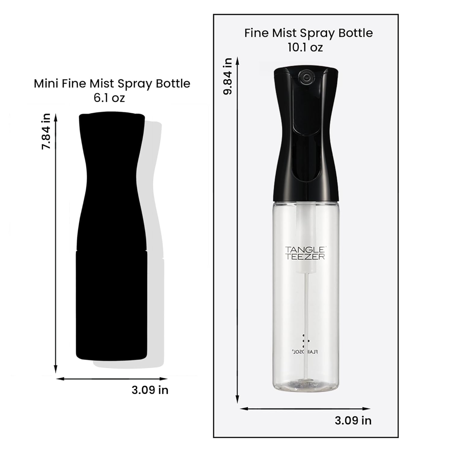 TANGLE TEEZER Fine Mist Continuous Spray Bottle, Reusable and Refillable, for Hair Detangling and Styling, 10.1 oz, Black